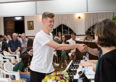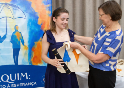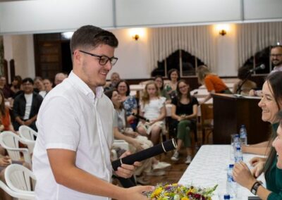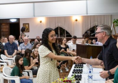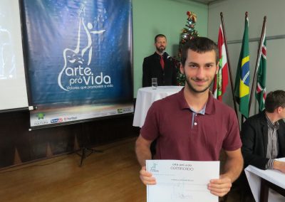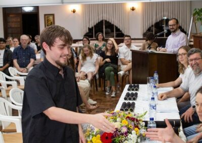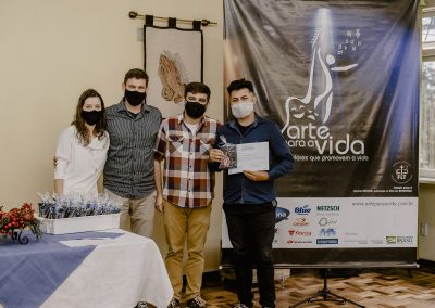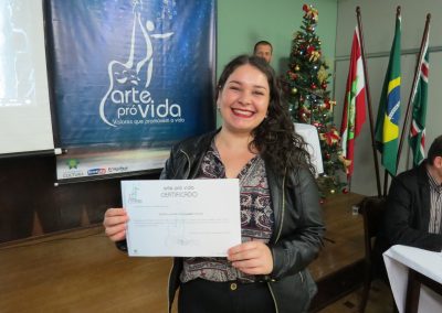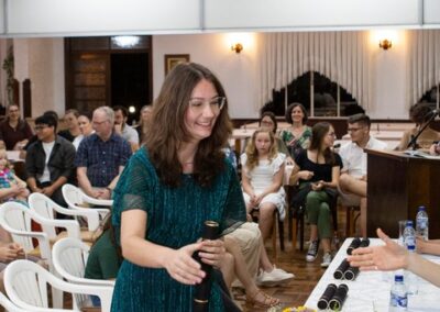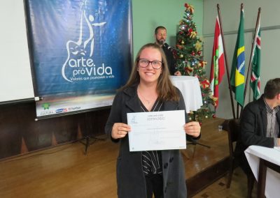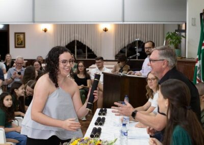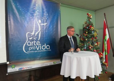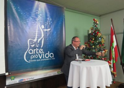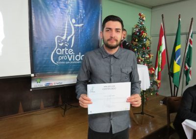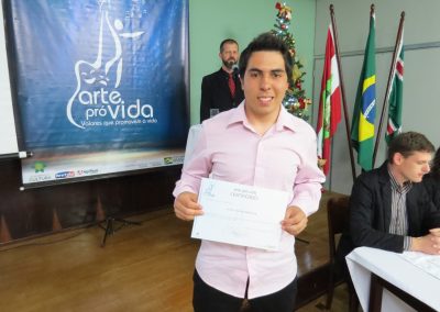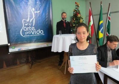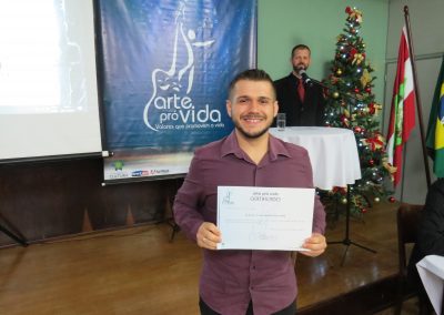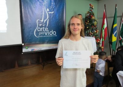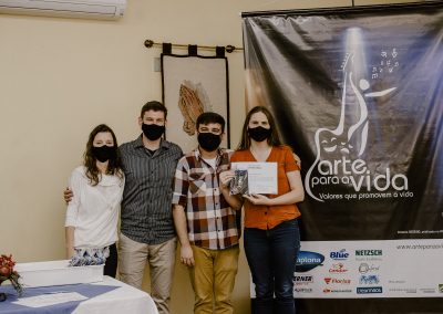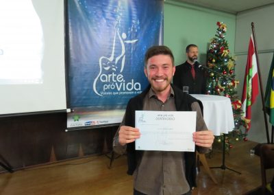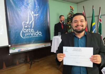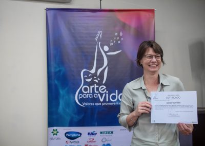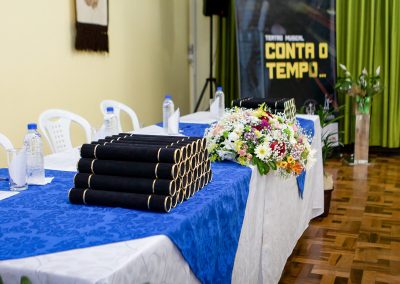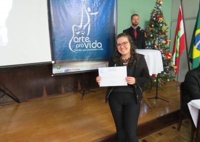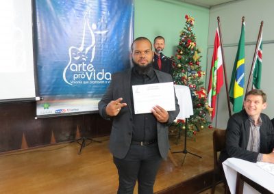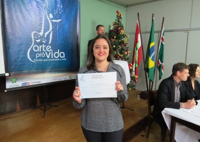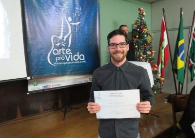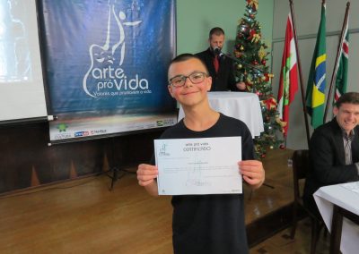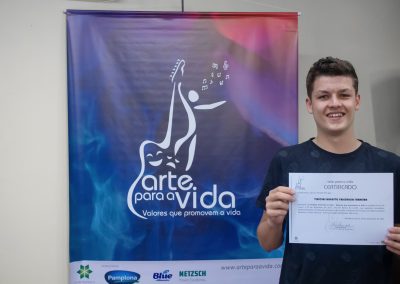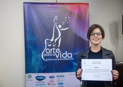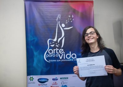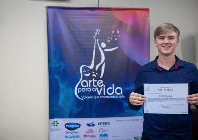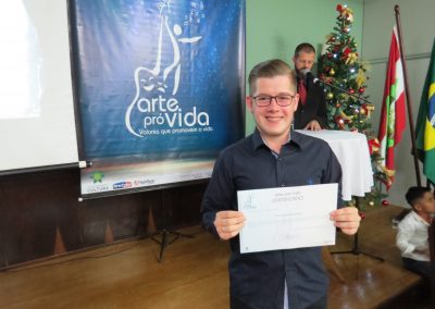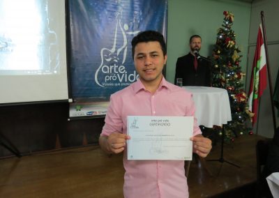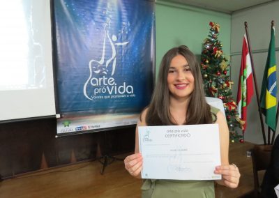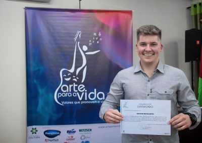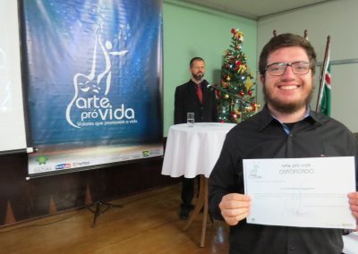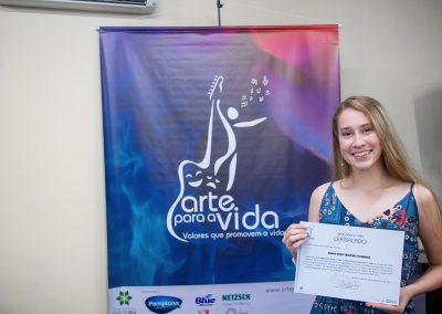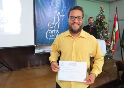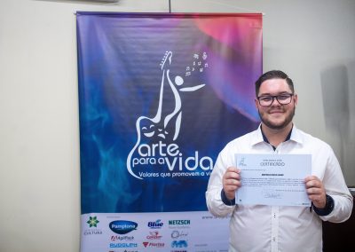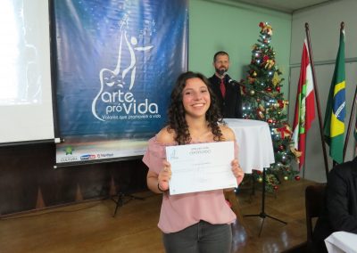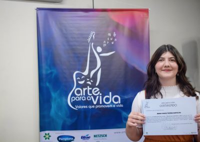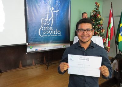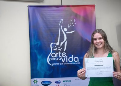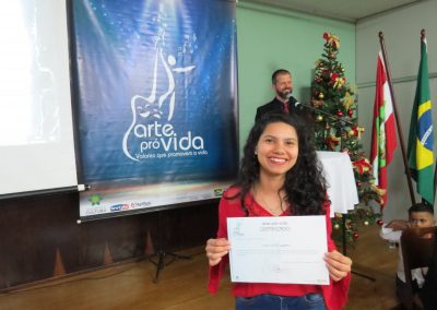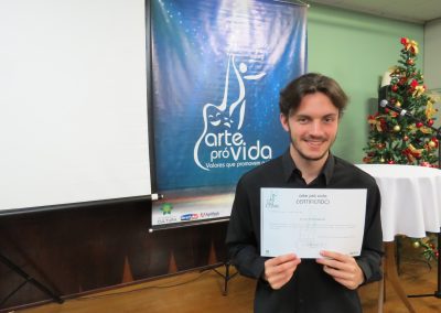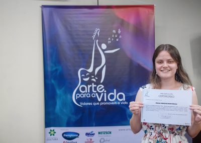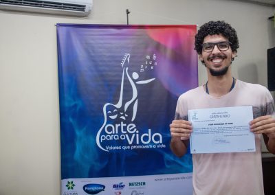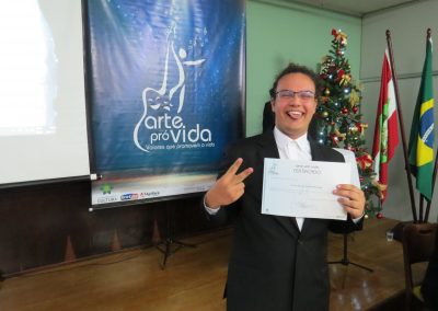 A formação artística em música (instrumental, canto coral, formação de banda), teatro e dança, além de formação na área técnica (sonorização e iluminação de eventos, montagem de palco) é parte integrante e essencial de cada edição do Projeto Cultural ARTE PARA A VIDA. O currículo oferecido encontra-se no submenu “Formação e Treinamento” [link?]. Junto com a formação, vem o treinamento regular para as apresentações dos eventos que fazem parte da agenda cultural do projeto, como os musicais ou os teatros musicais. Apresentamos aqui informações e galerias de fotos e imagens das cerimônias de formatura do projeto dos últimos anos: