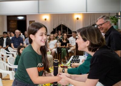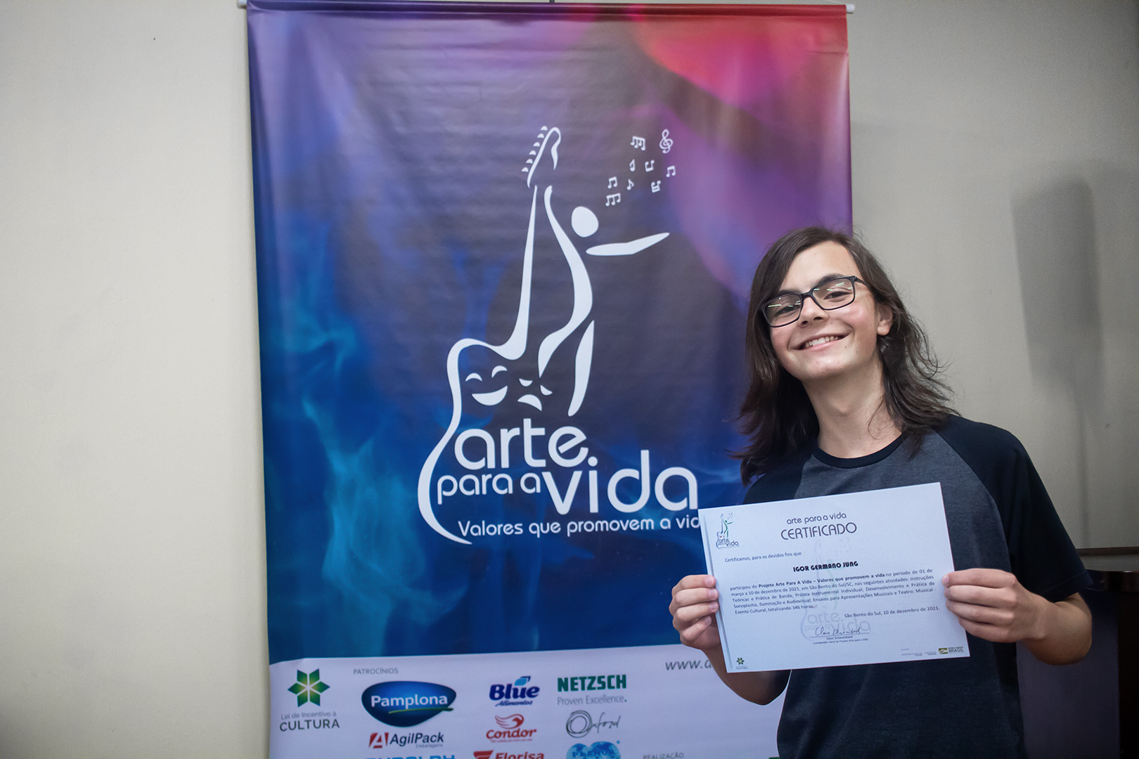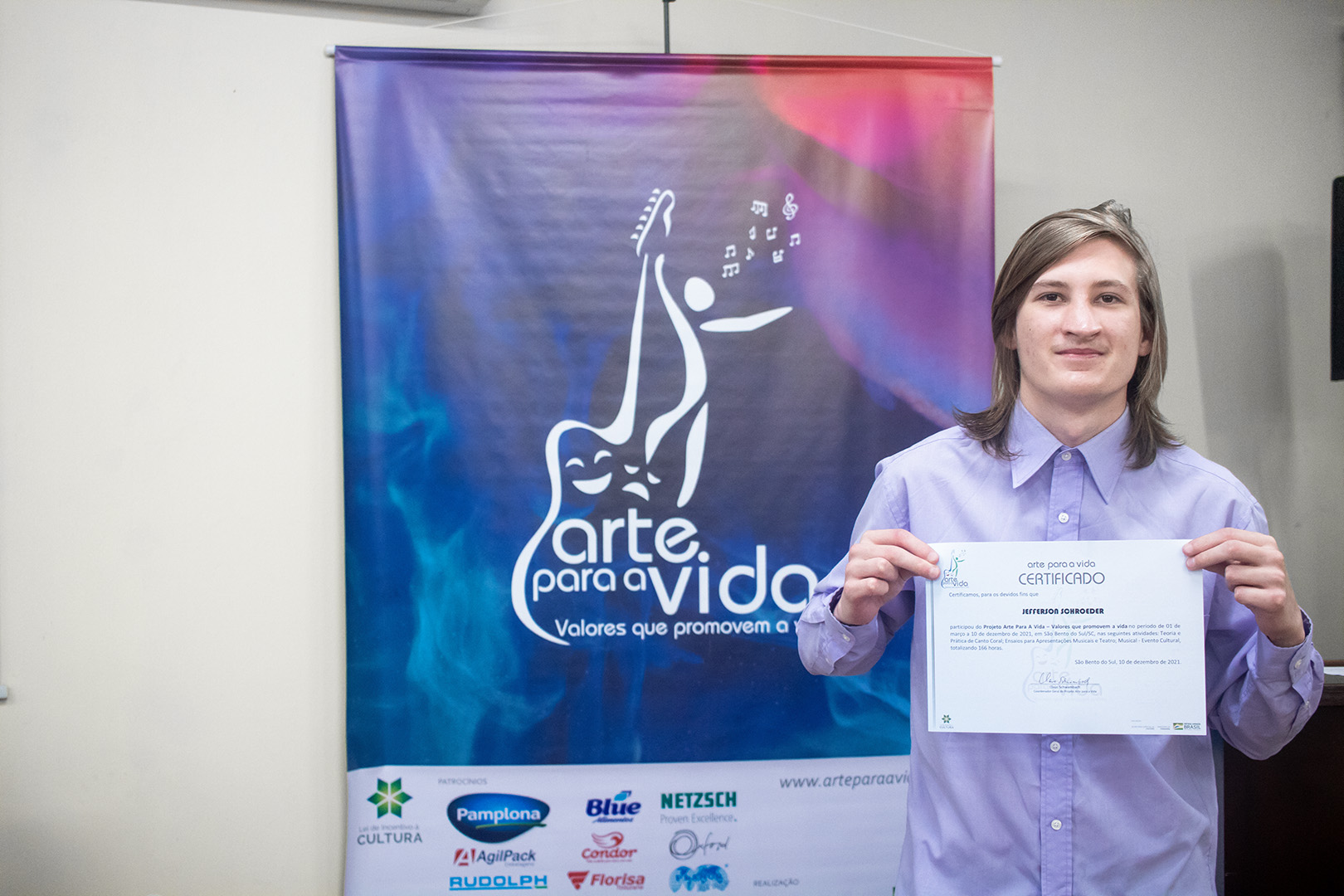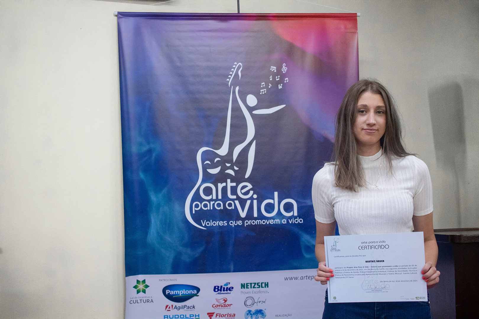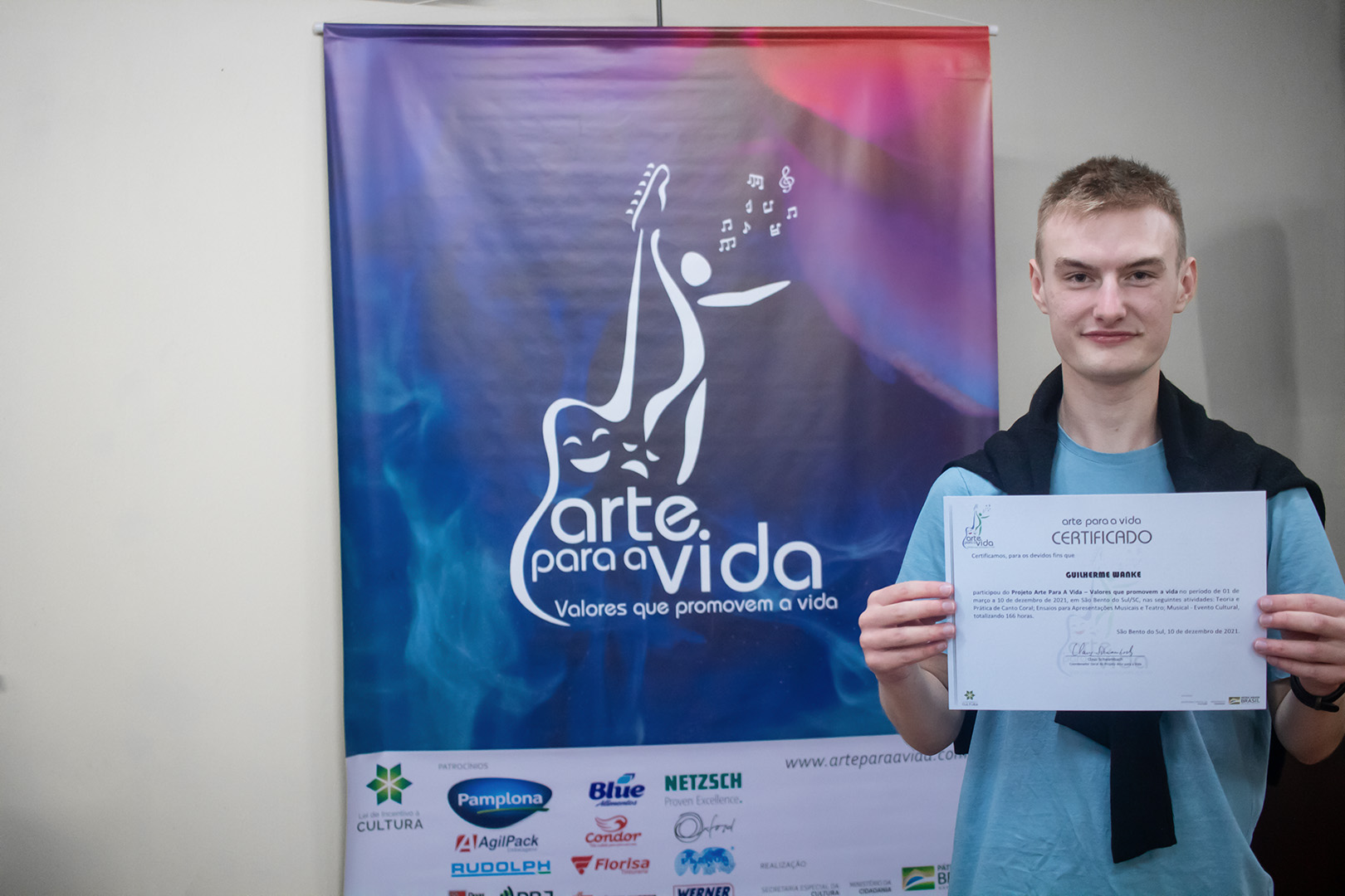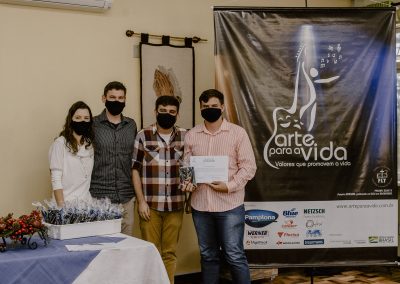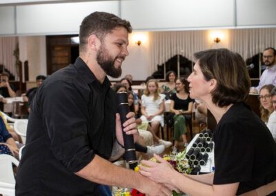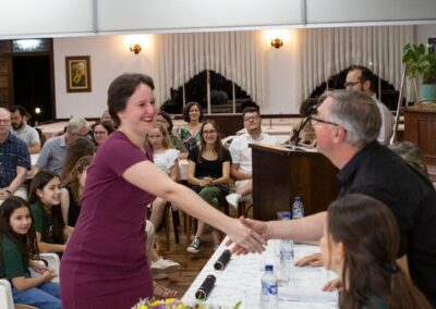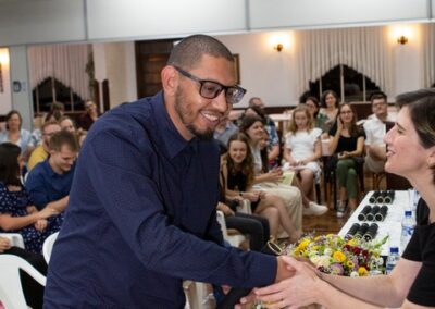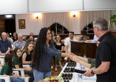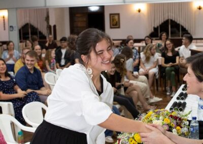 A formação artística em música (instrumental, canto coral, formação de banda), teatro e dança, além de formação na área técnica (sonorização e iluminação de eventos, montagem de palco) é parte integrante e essencial de cada edição do Projeto Cultural ARTE PARA A VIDA. O currículo oferecido encontra-se no submenu “Formação e Treinamento” [link?]. Junto com a formação, vem o treinamento regular para as apresentações dos eventos que fazem parte da agenda cultural do projeto, como os musicais ou os teatros musicais. Apresentamos aqui informações e galerias de fotos e imagens das cerimônias de formatura do projeto dos últimos anos: