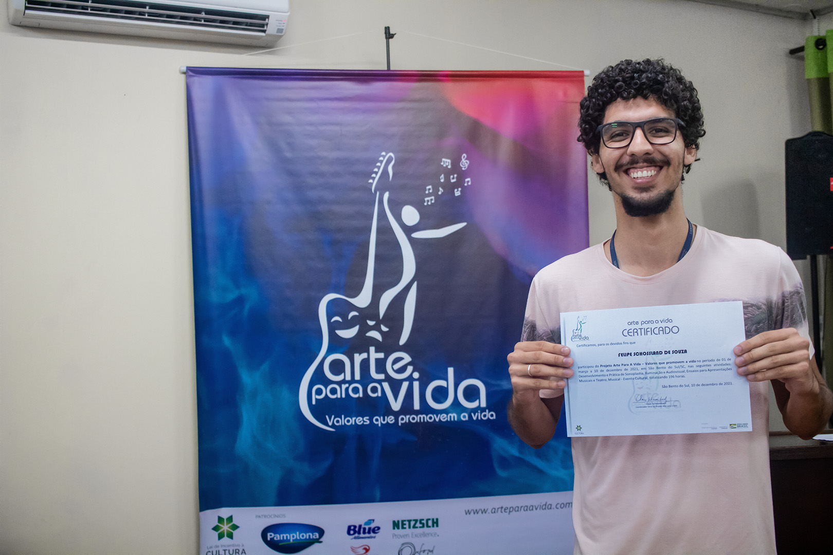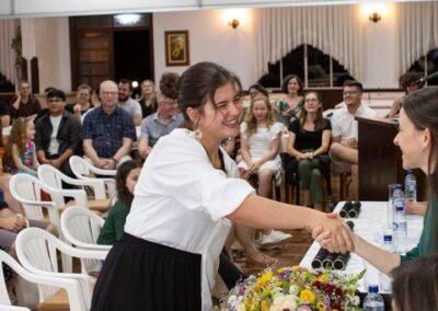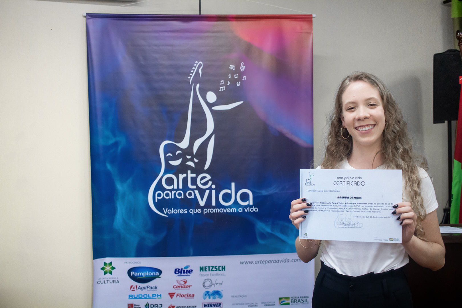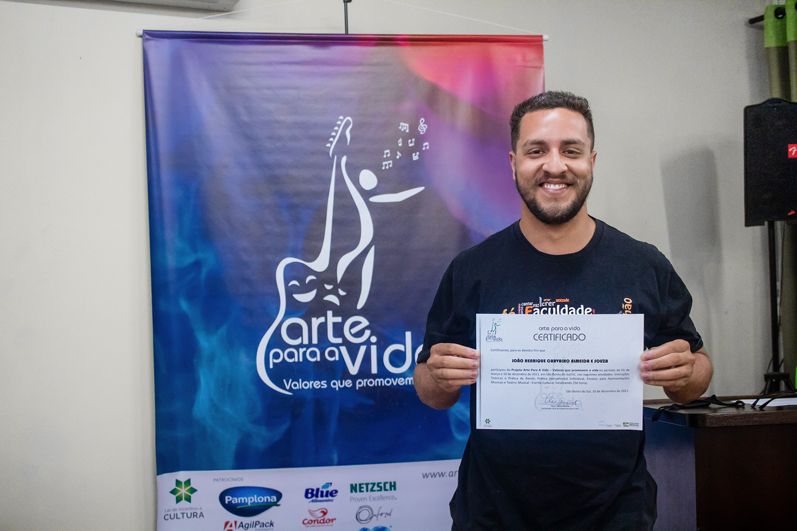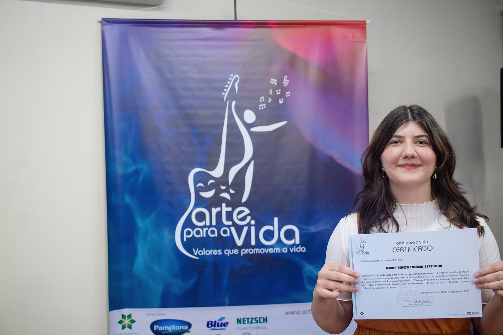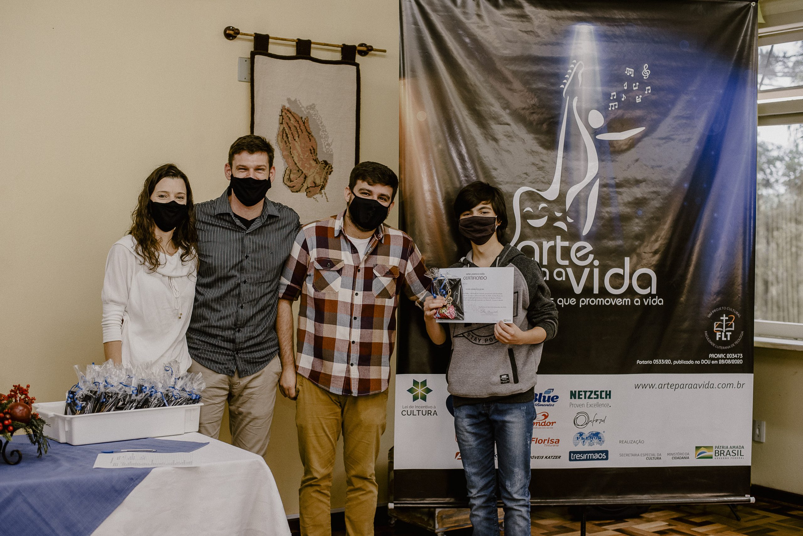 A formação artística em música (instrumental, canto coral, formação de banda), teatro e dança, além de formação na área técnica (sonorização e iluminação de eventos, montagem de palco) é parte integrante e essencial de cada edição do Projeto Cultural ARTE PARA A VIDA. O currículo oferecido encontra-se no submenu “Formação e Treinamento” [link?]. Junto com a formação, vem o treinamento regular para as apresentações dos eventos que fazem parte da agenda cultural do projeto, como os musicais ou os teatros musicais. Apresentamos aqui informações e galerias de fotos e imagens das cerimônias de formatura do projeto dos últimos anos: