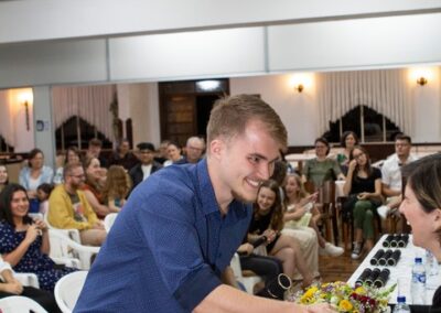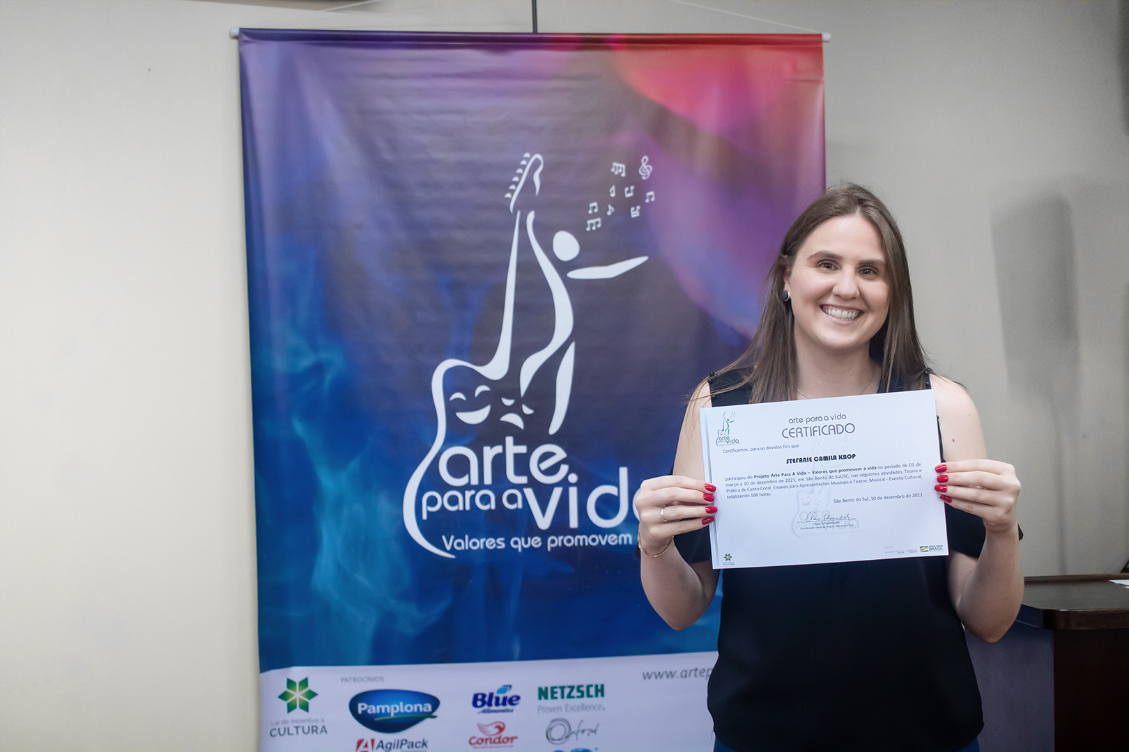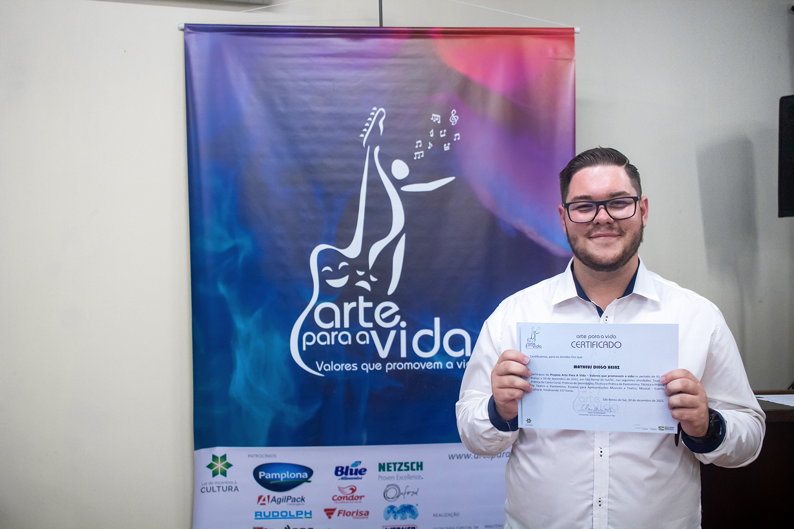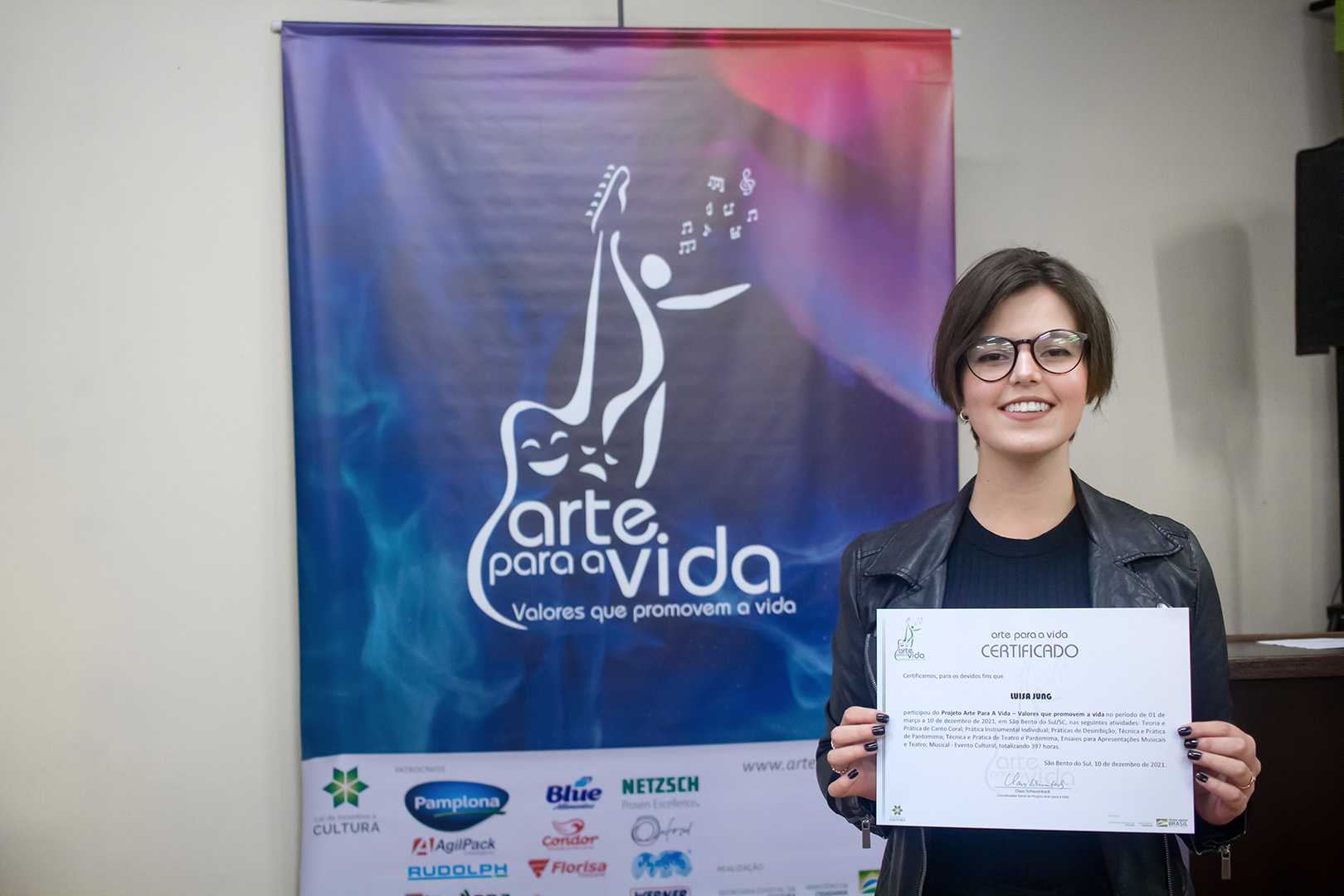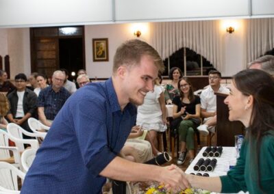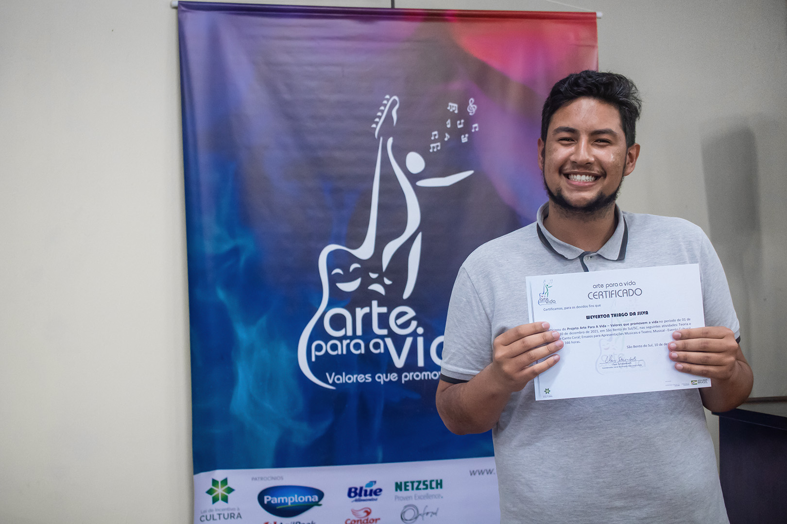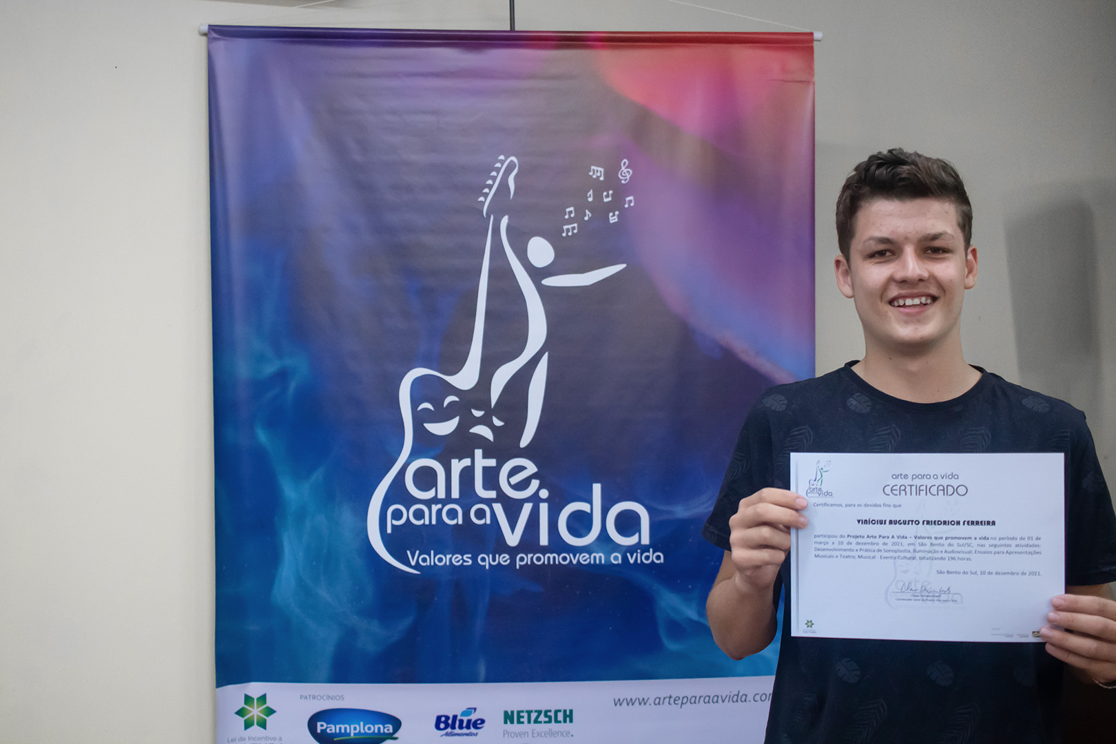 A formação artística em música (instrumental, canto coral, formação de banda), teatro e dança, além de formação na área técnica (sonorização e iluminação de eventos, montagem de palco) é parte integrante e essencial de cada edição do Projeto Cultural ARTE PARA A VIDA. O currículo oferecido encontra-se no submenu “Formação e Treinamento” [link?]. Junto com a formação, vem o treinamento regular para as apresentações dos eventos que fazem parte da agenda cultural do projeto, como os musicais ou os teatros musicais. Apresentamos aqui informações e galerias de fotos e imagens das cerimônias de formatura do projeto dos últimos anos: