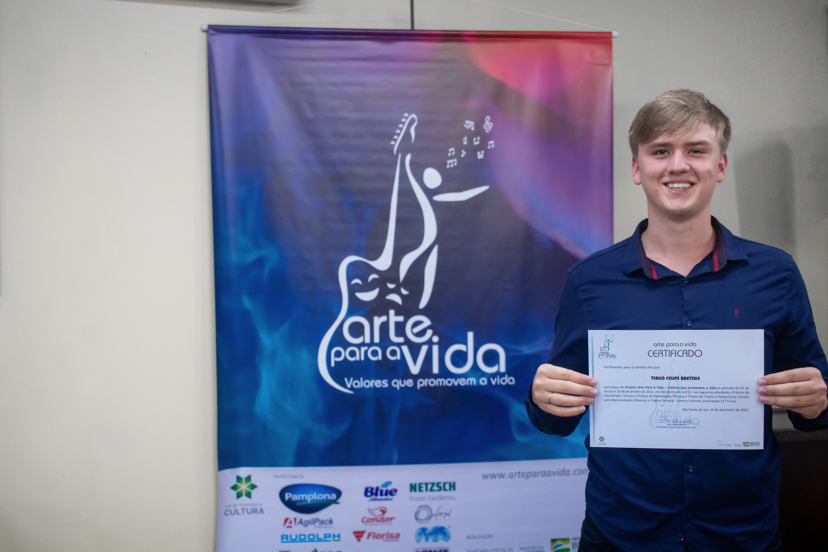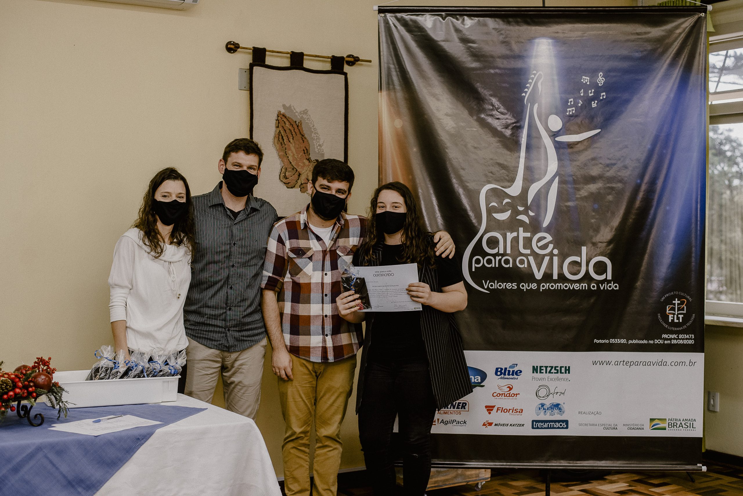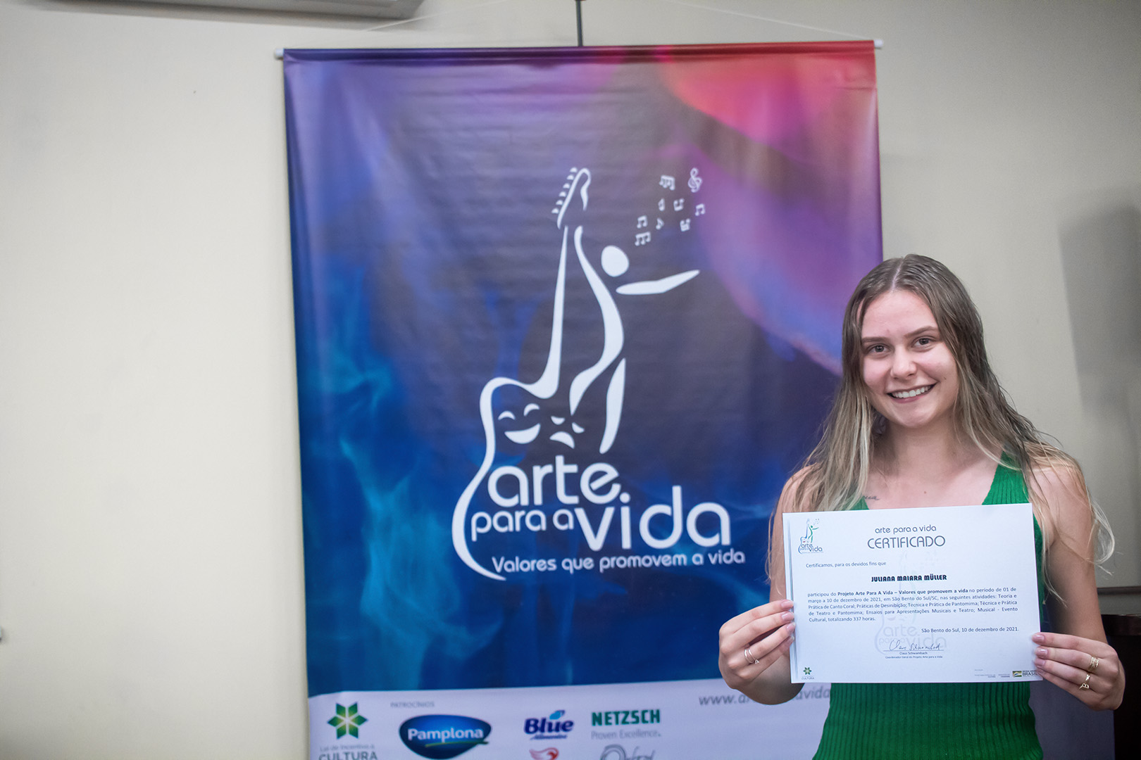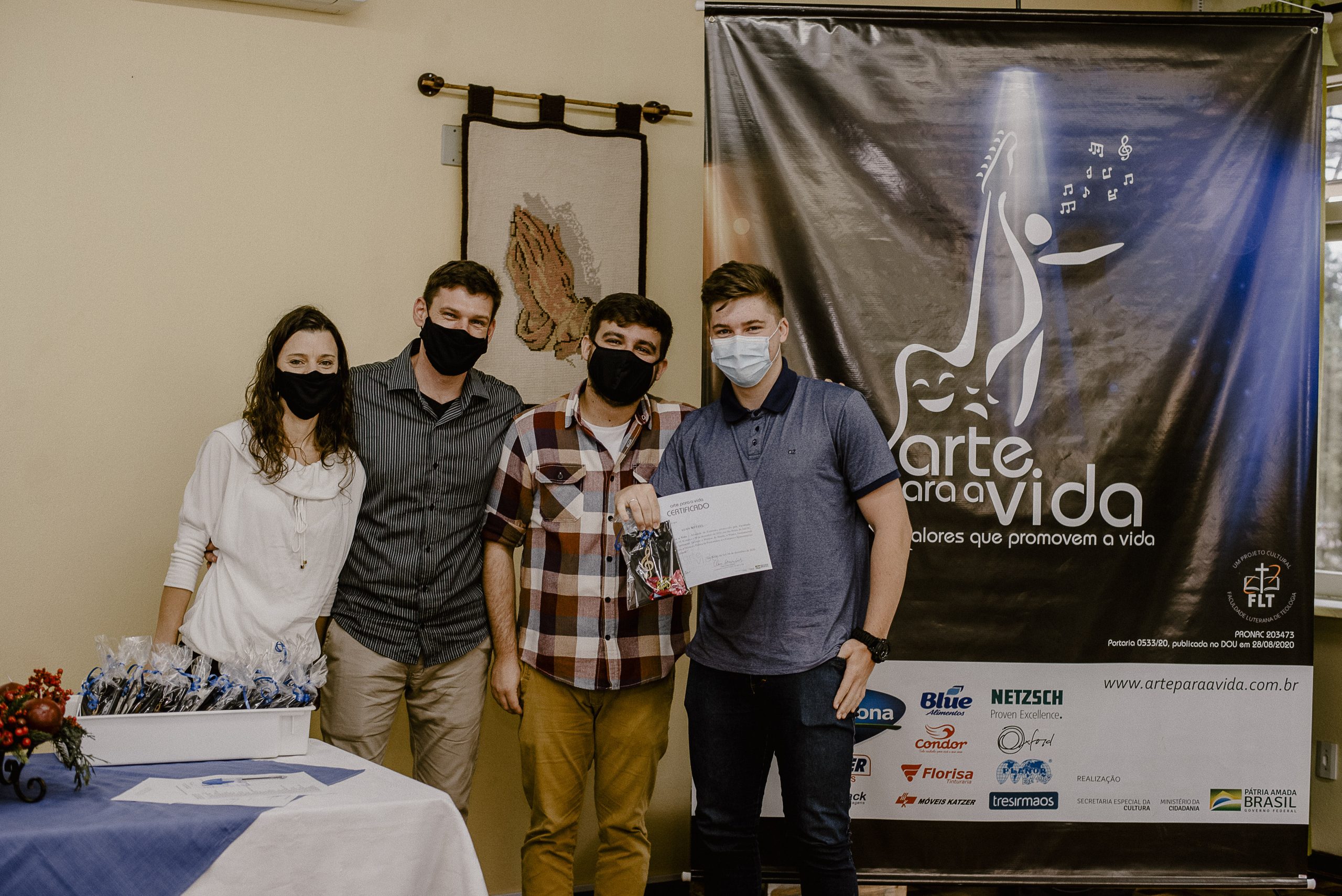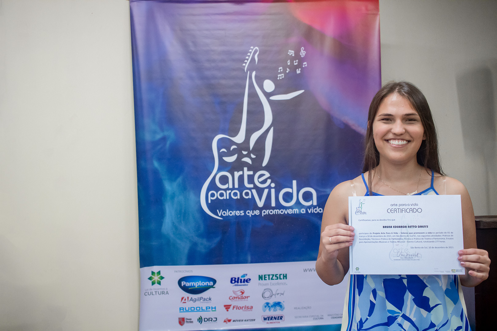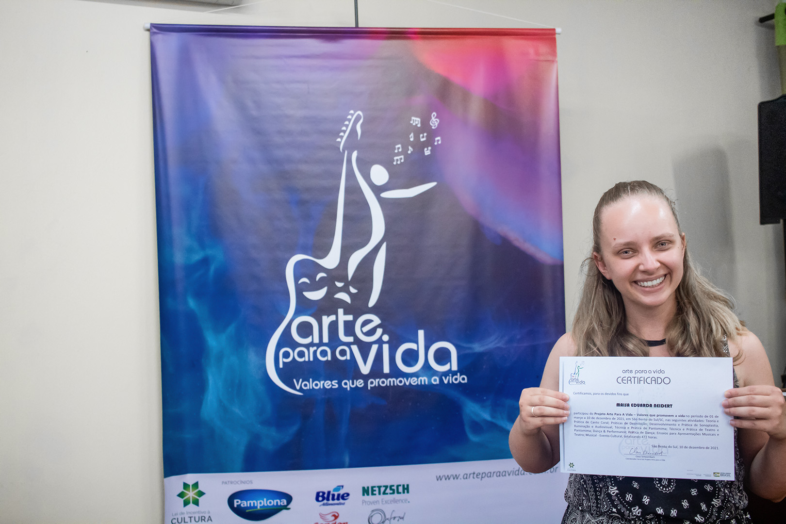 A formação artística em música (instrumental, canto coral, formação de banda), teatro e dança, além de formação na área técnica (sonorização e iluminação de eventos, montagem de palco) é parte integrante e essencial de cada edição do Projeto Cultural ARTE PARA A VIDA. O currículo oferecido encontra-se no submenu “Formação e Treinamento” [link?]. Junto com a formação, vem o treinamento regular para as apresentações dos eventos que fazem parte da agenda cultural do projeto, como os musicais ou os teatros musicais. Apresentamos aqui informações e galerias de fotos e imagens das cerimônias de formatura do projeto dos últimos anos: