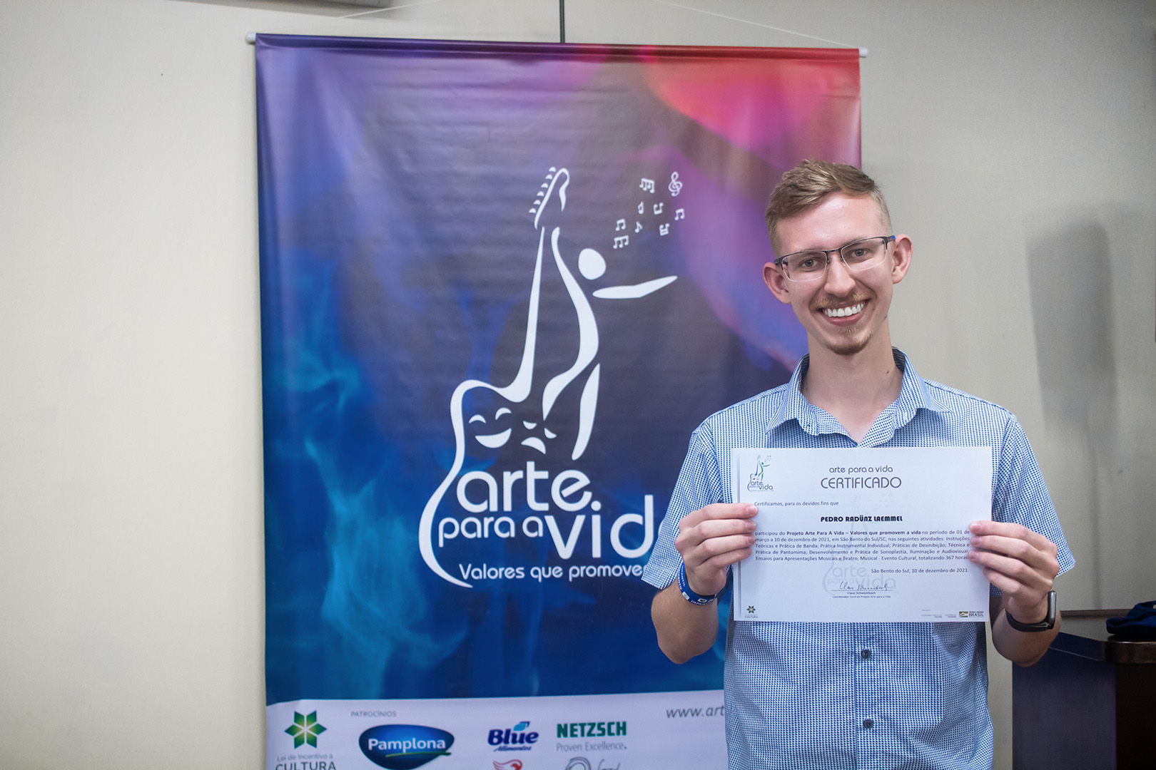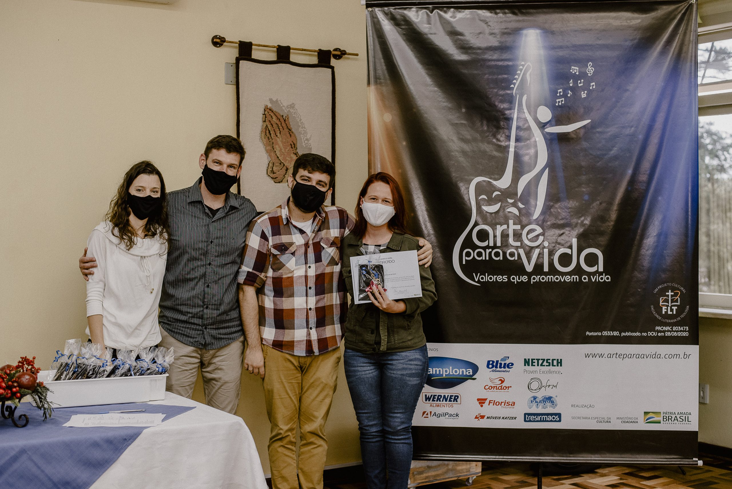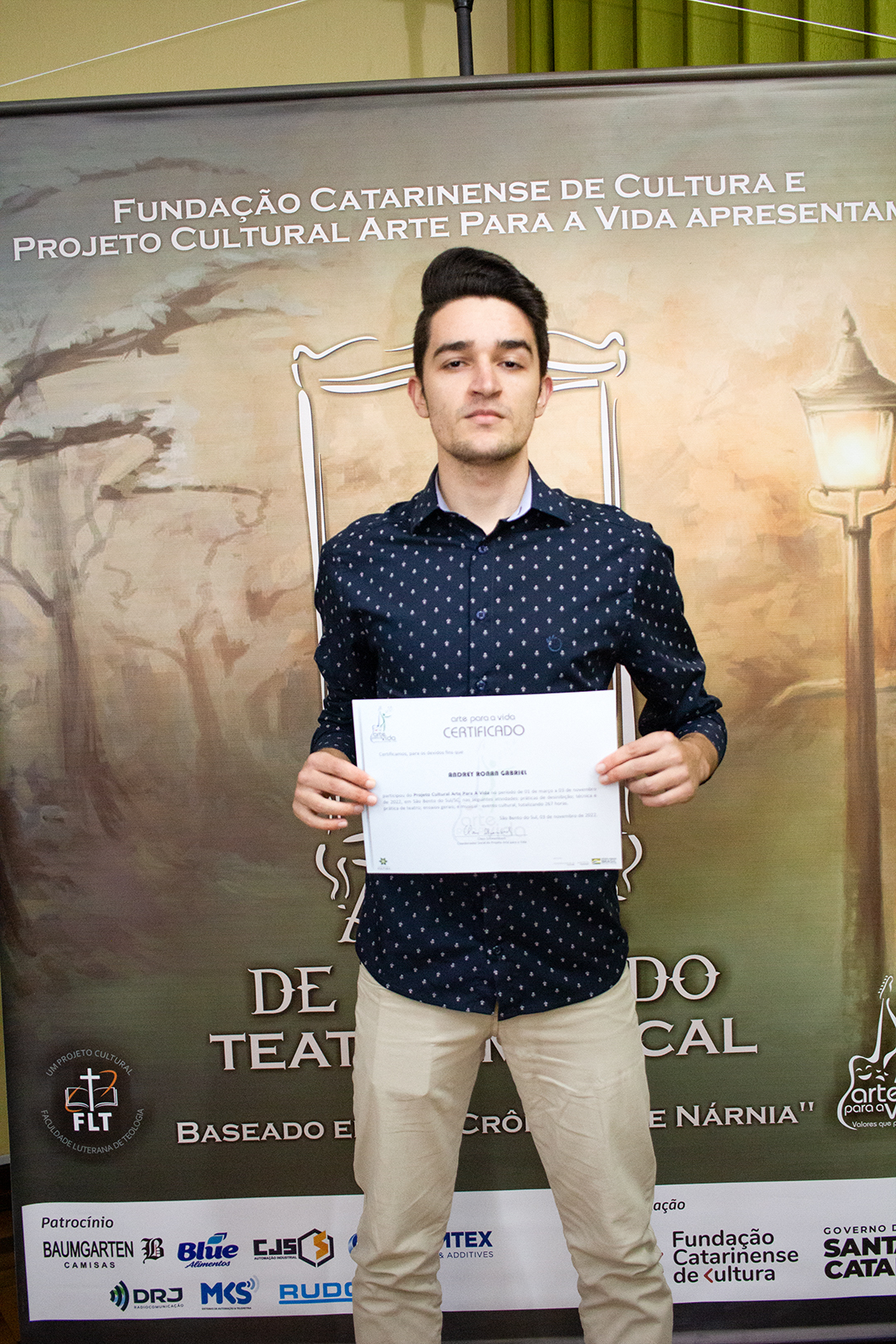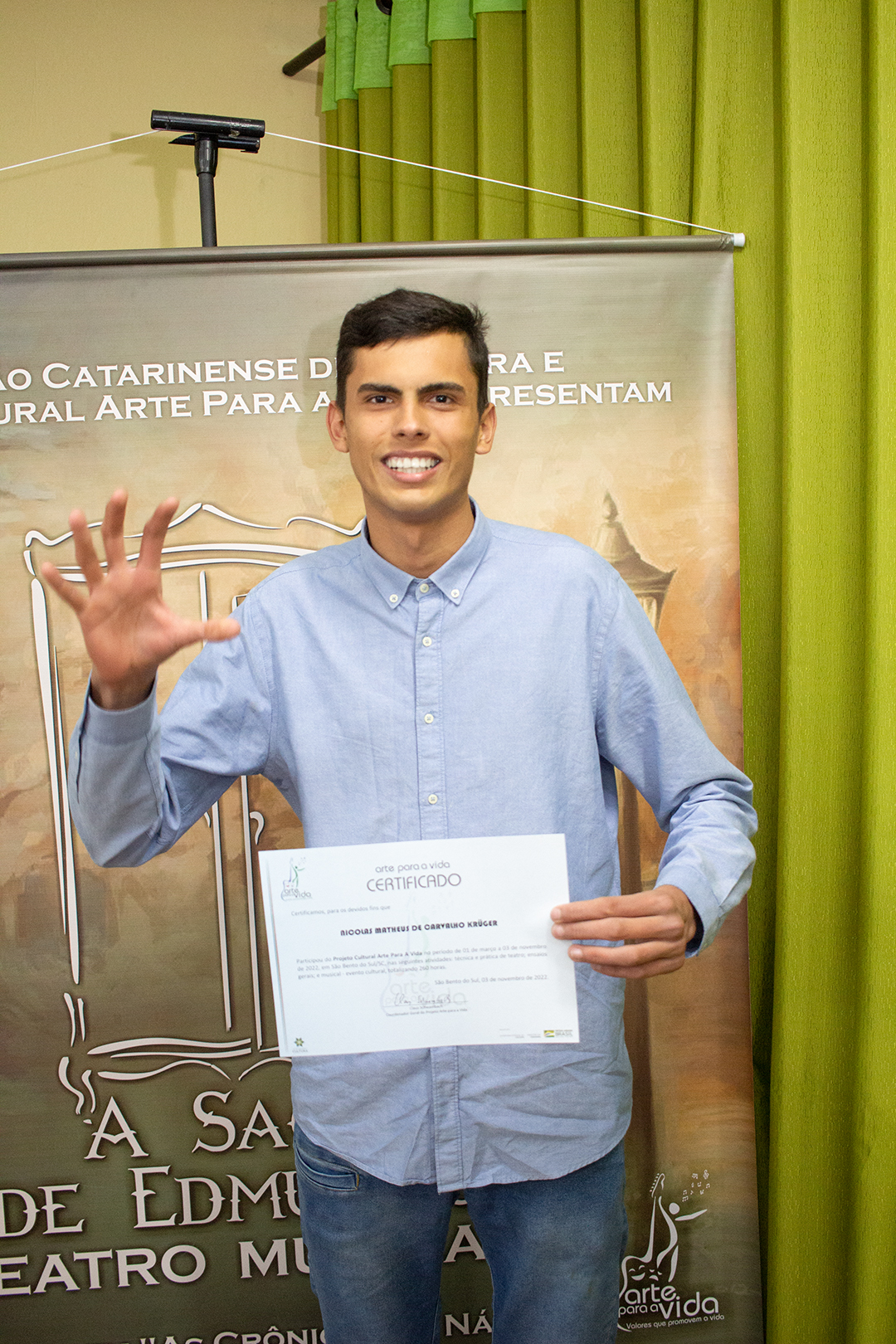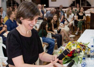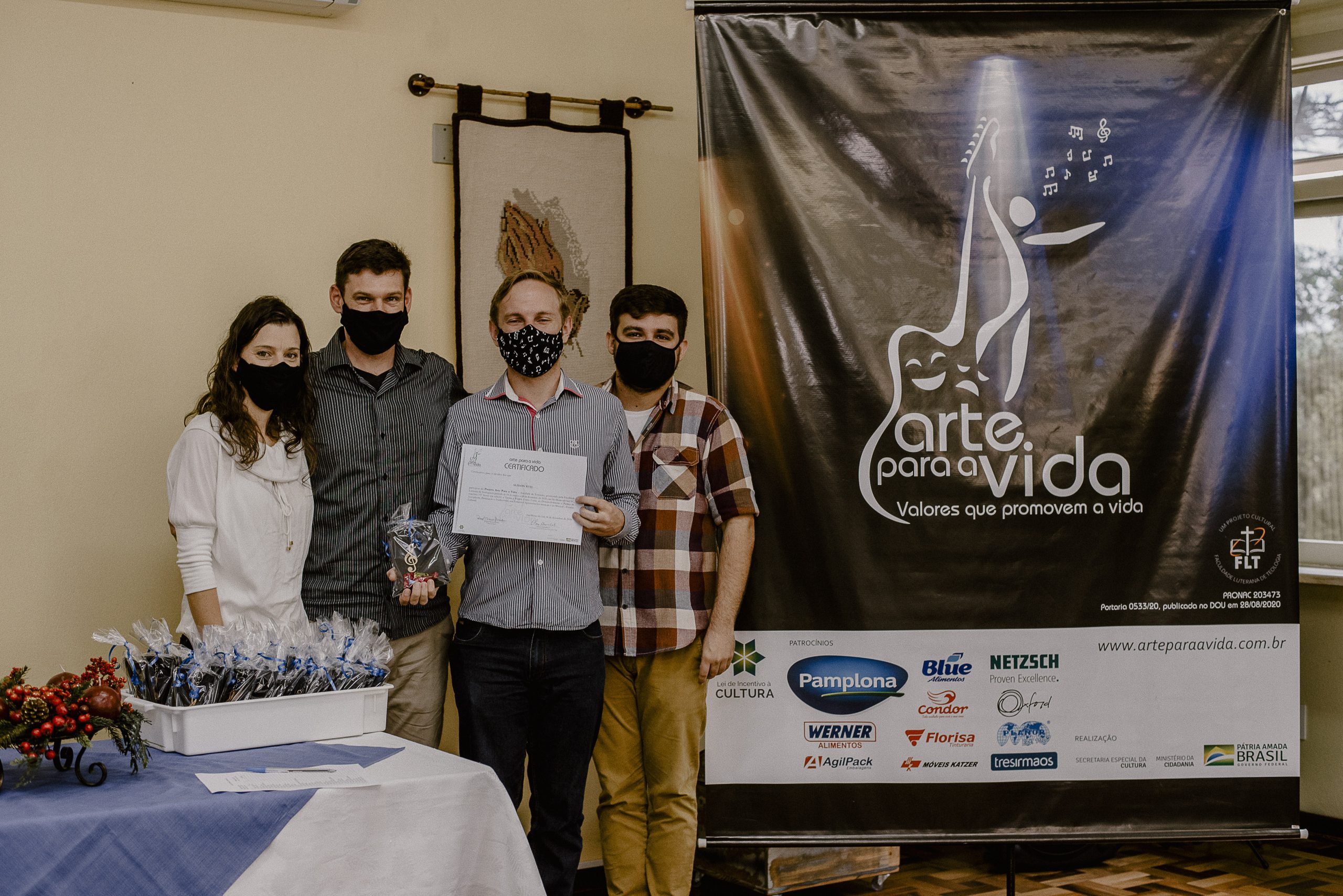 A formação artística em música (instrumental, canto coral, formação de banda), teatro e dança, além de formação na área técnica (sonorização e iluminação de eventos, montagem de palco) é parte integrante e essencial de cada edição do Projeto Cultural ARTE PARA A VIDA. O currículo oferecido encontra-se no submenu “Formação e Treinamento” [link?]. Junto com a formação, vem o treinamento regular para as apresentações dos eventos que fazem parte da agenda cultural do projeto, como os musicais ou os teatros musicais. Apresentamos aqui informações e galerias de fotos e imagens das cerimônias de formatura do projeto dos últimos anos: