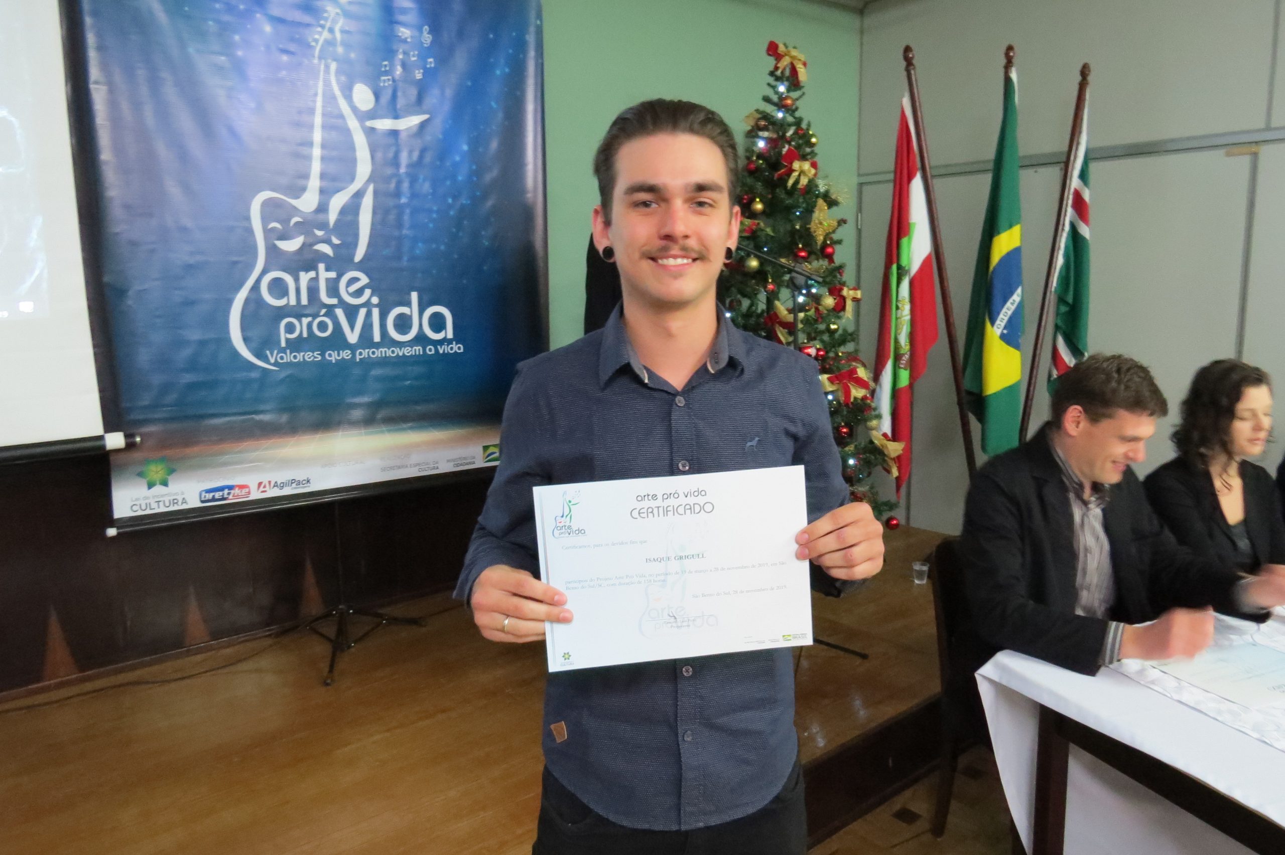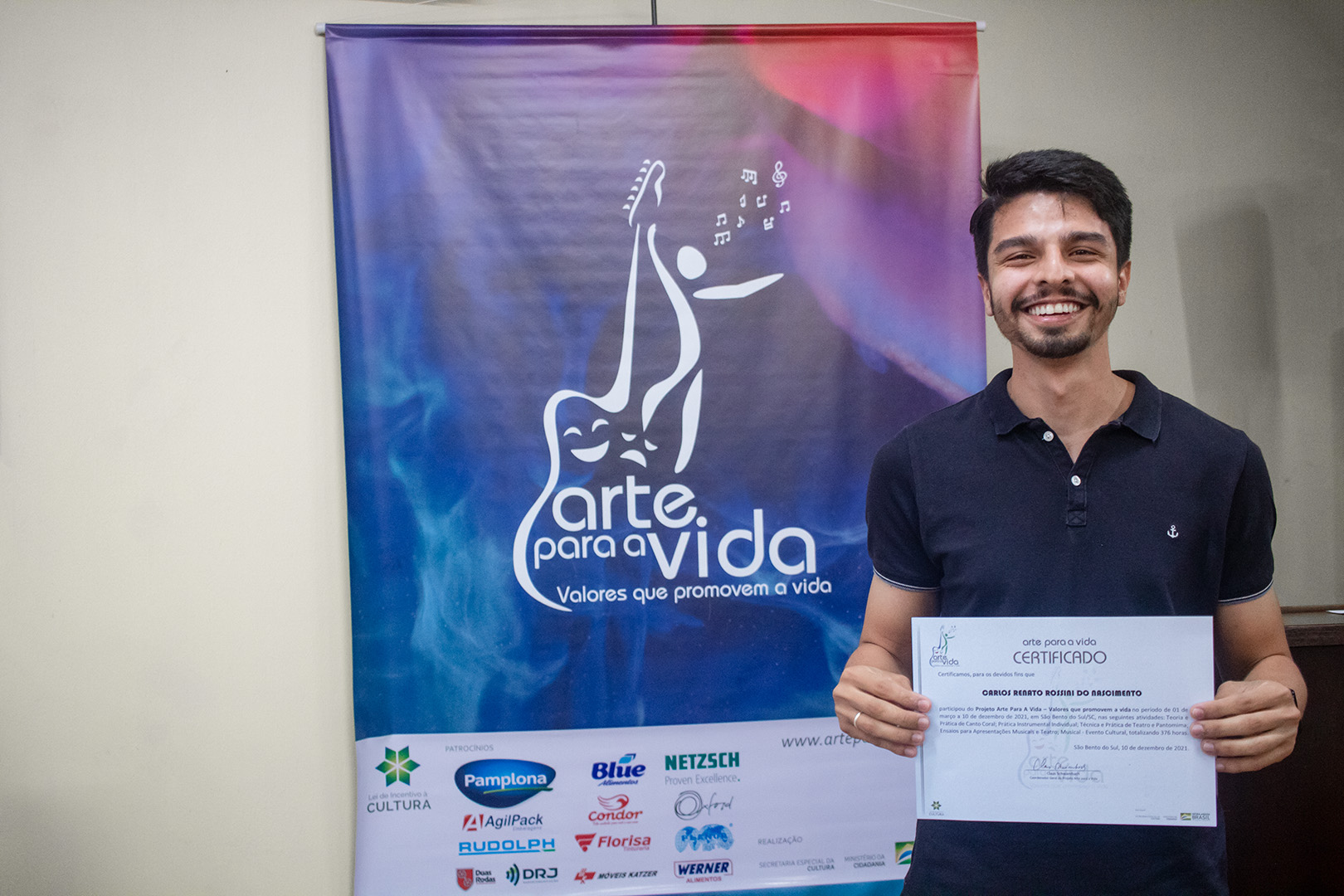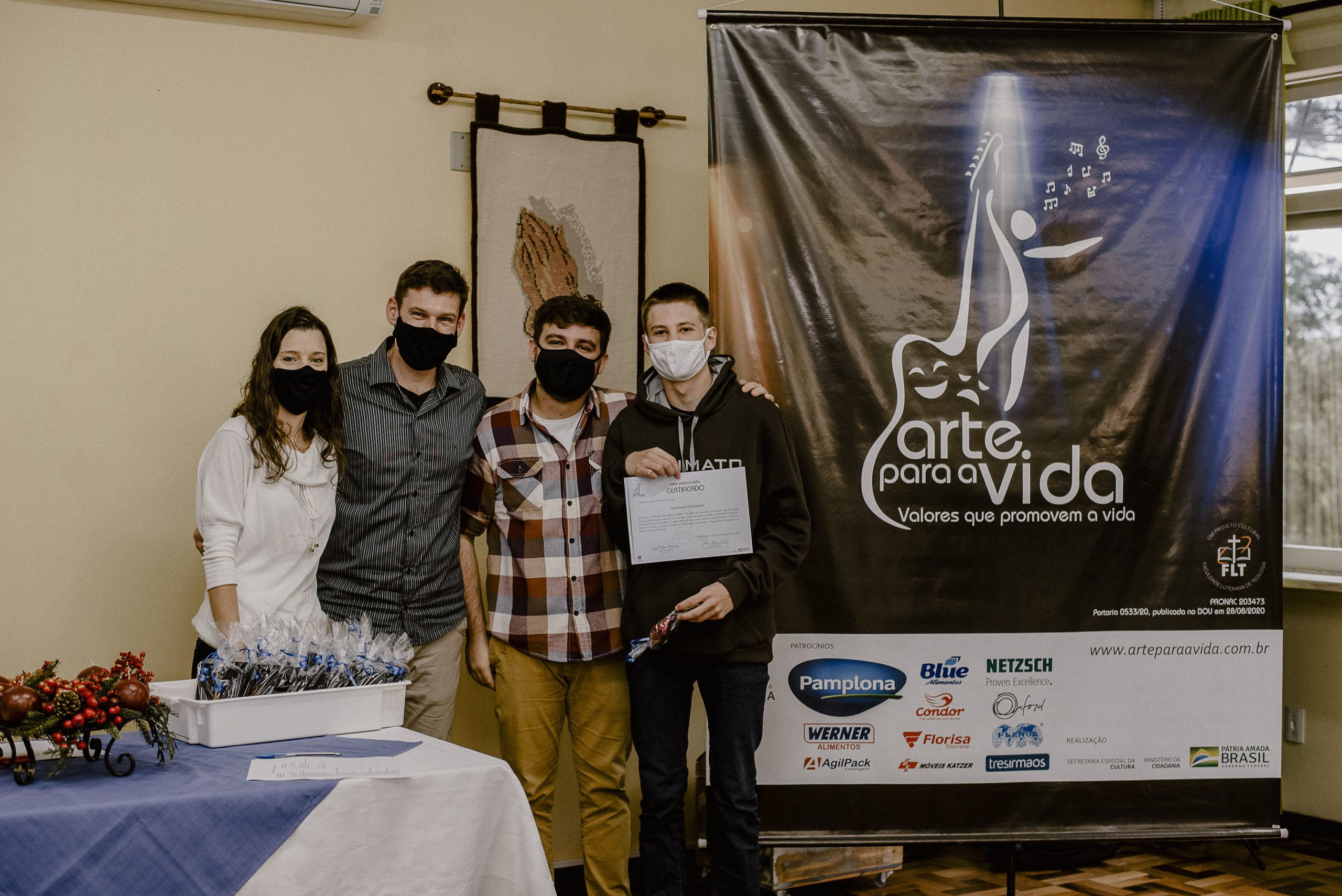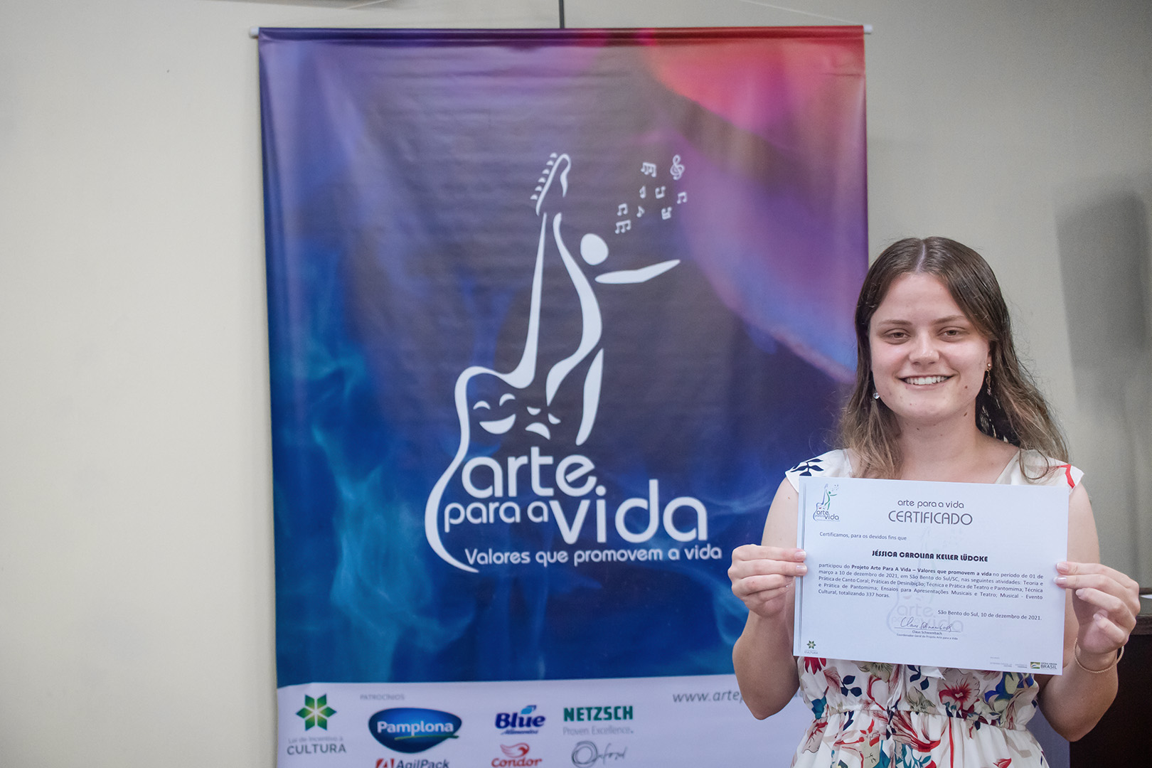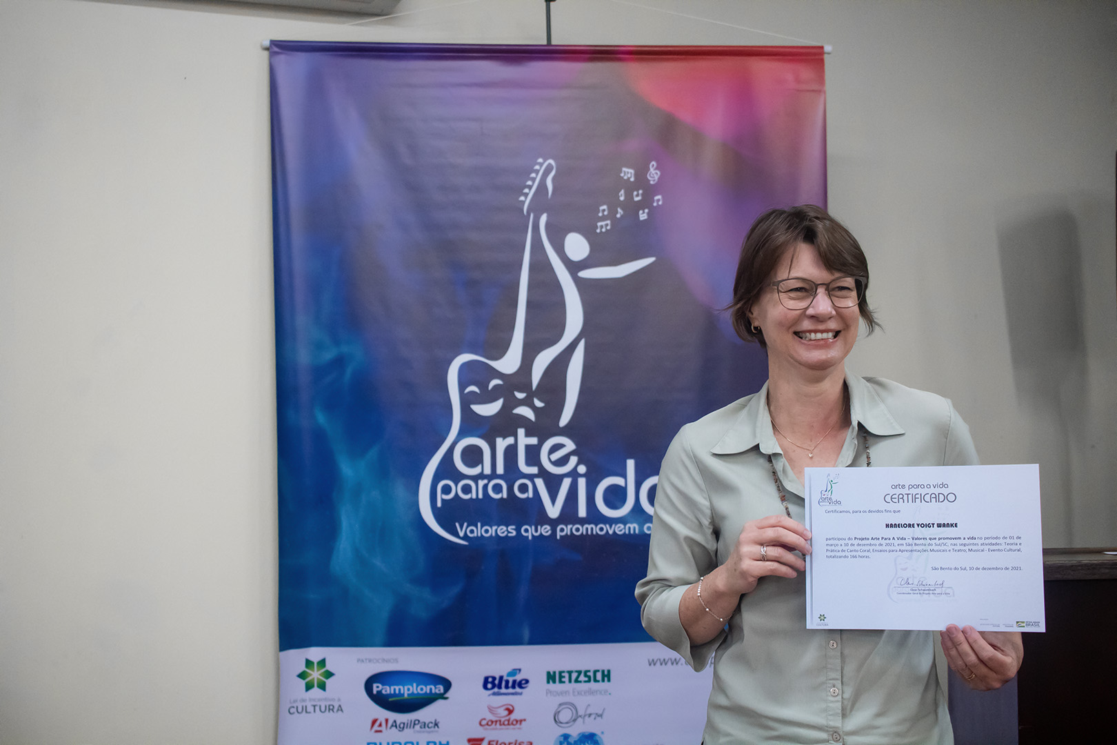 A formação artística em música (instrumental, canto coral, formação de banda), teatro e dança, além de formação na área técnica (sonorização e iluminação de eventos, montagem de palco) é parte integrante e essencial de cada edição do Projeto Cultural ARTE PARA A VIDA. O currículo oferecido encontra-se no submenu “Formação e Treinamento” [link?]. Junto com a formação, vem o treinamento regular para as apresentações dos eventos que fazem parte da agenda cultural do projeto, como os musicais ou os teatros musicais. Apresentamos aqui informações e galerias de fotos e imagens das cerimônias de formatura do projeto dos últimos anos: