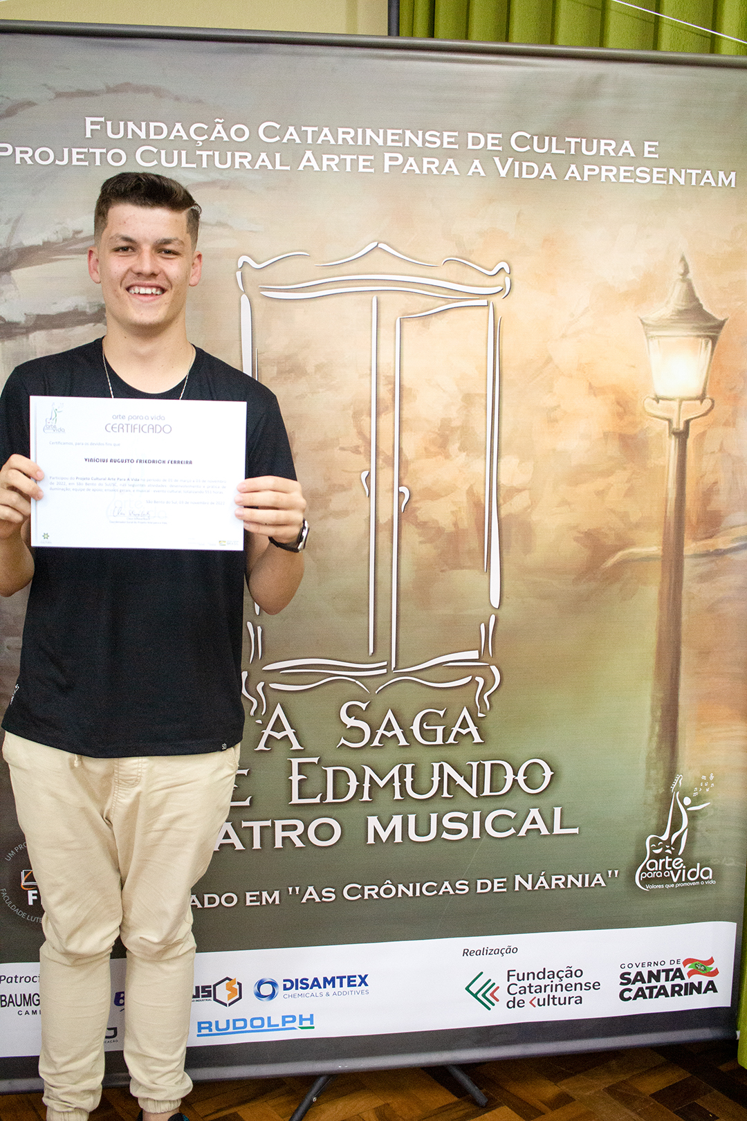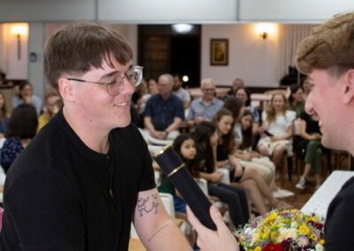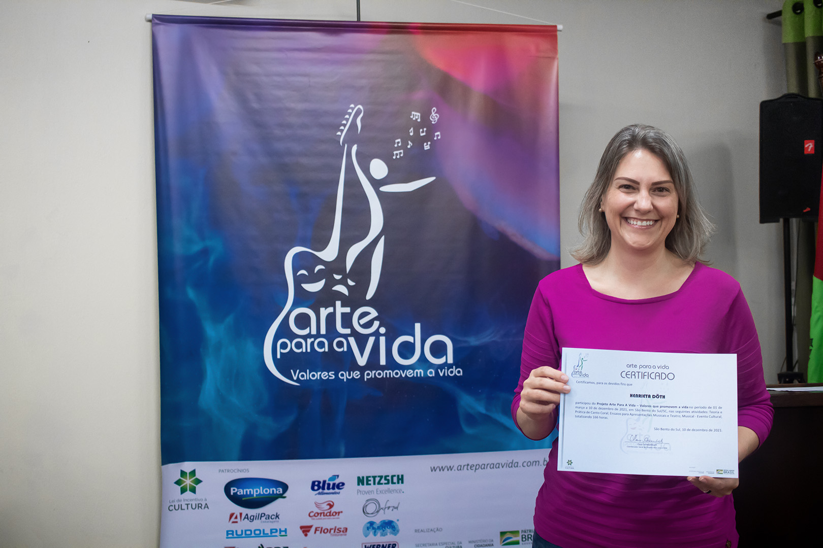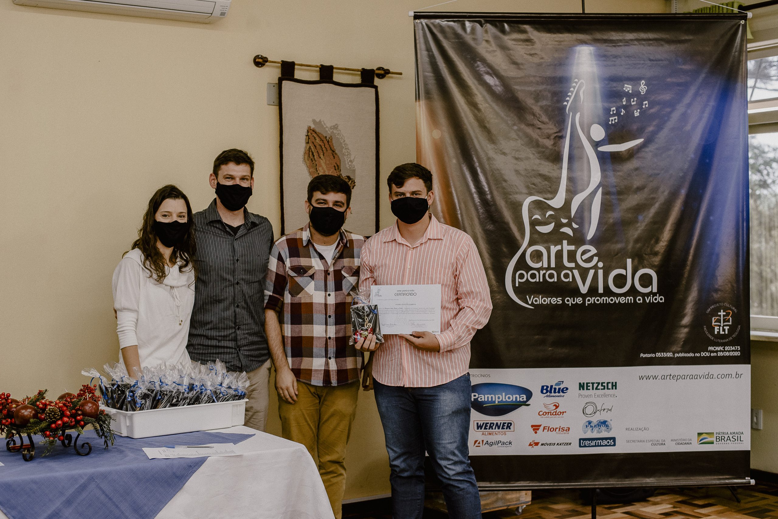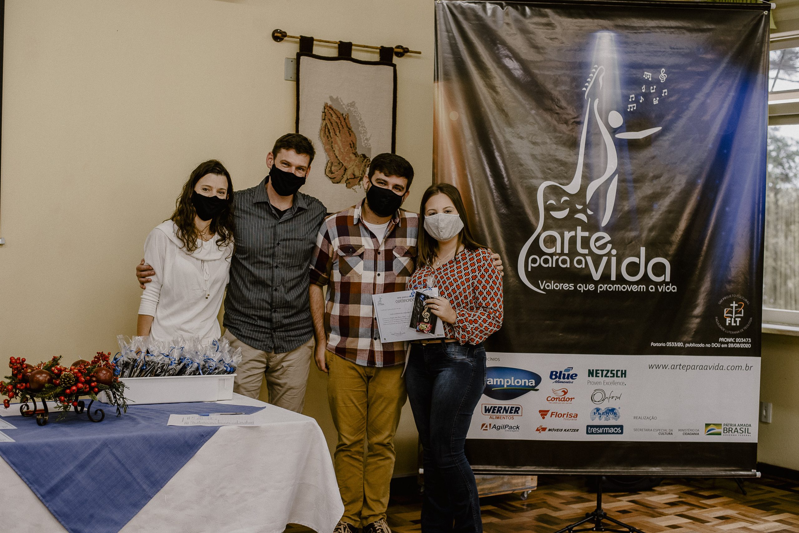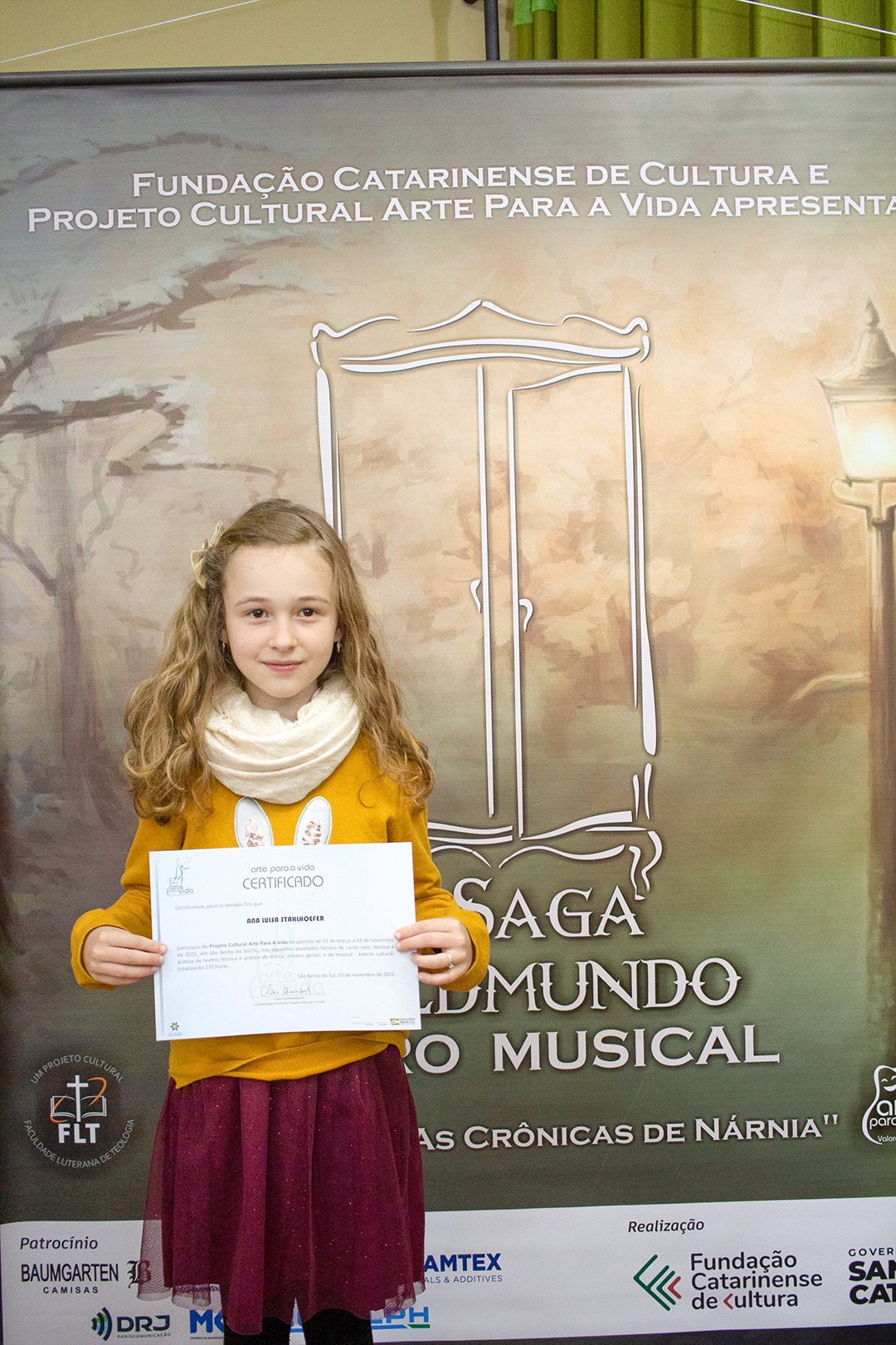A formação artística em música (instrumental, canto coral, formação de banda), teatro e dança, além de formação na área técnica (sonorização e iluminação de eventos, montagem de palco) é parte integrante e essencial de cada edição do Projeto Cultural ARTE PARA A VIDA. O currículo oferecido encontra-se no submenu “Formação e Treinamento” [link?]. Junto com a formação, vem o treinamento regular para as apresentações dos eventos que fazem parte da agenda cultural do projeto, como os musicais ou os teatros musicais. Apresentamos aqui informações e galerias de fotos e imagens das cerimônias de formatura do projeto dos últimos anos: