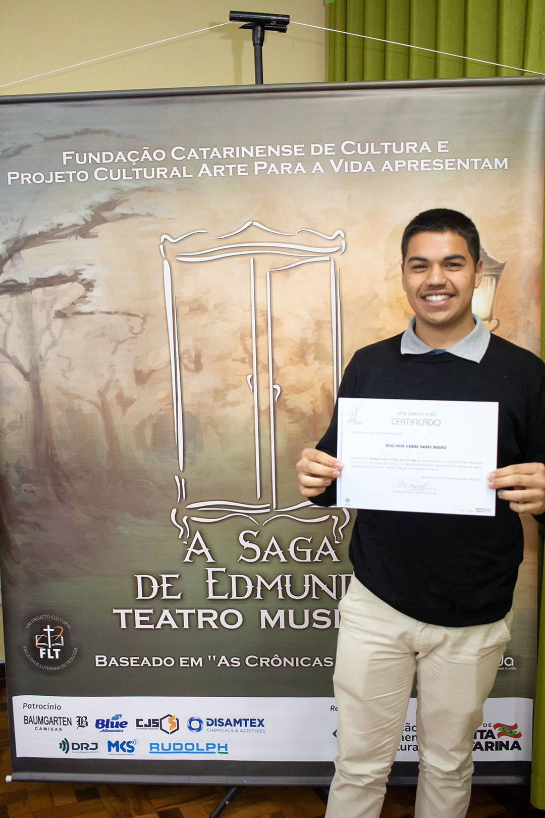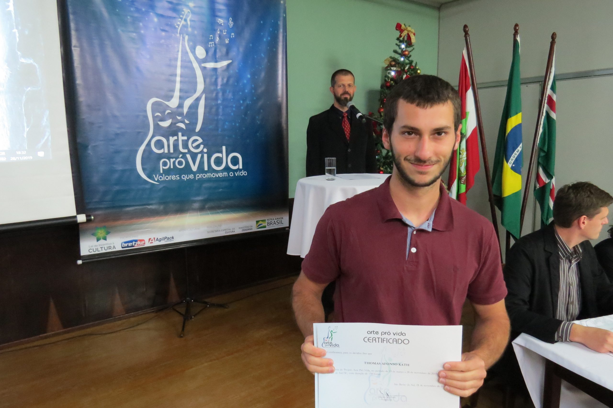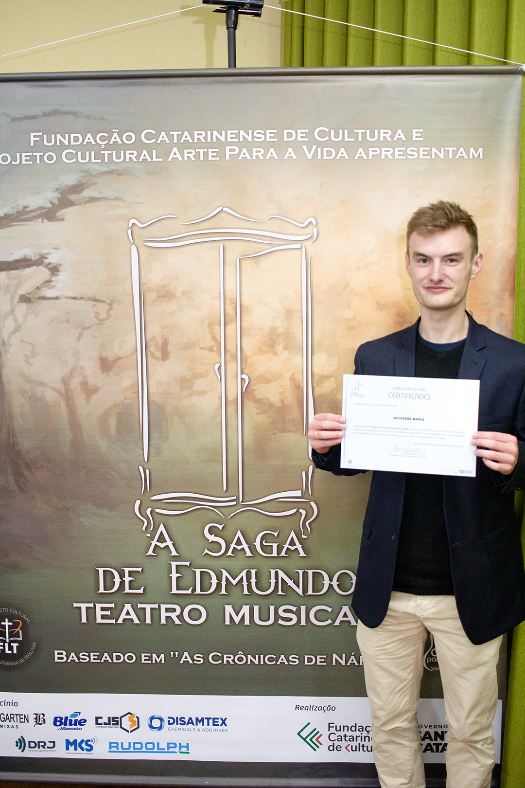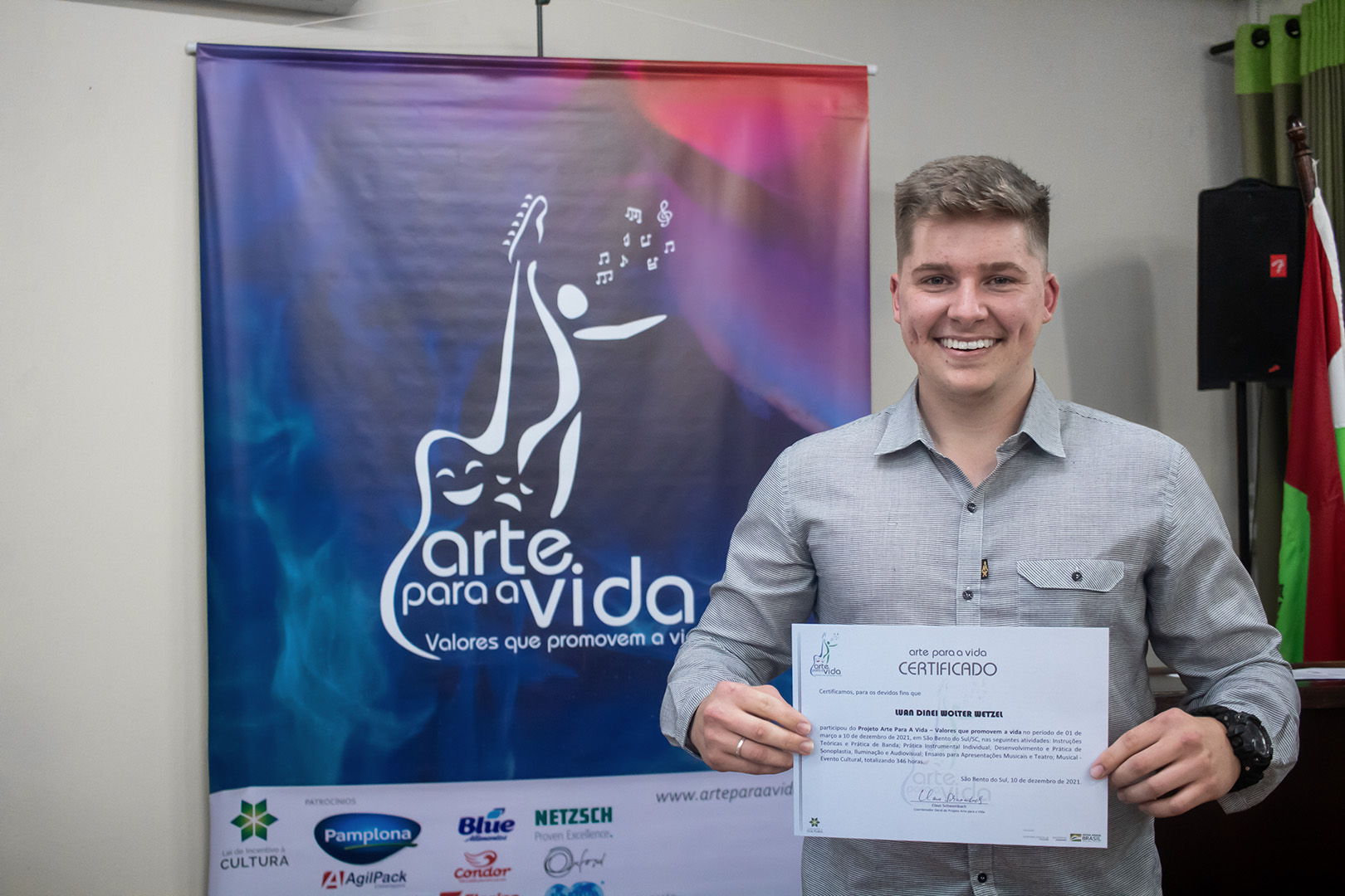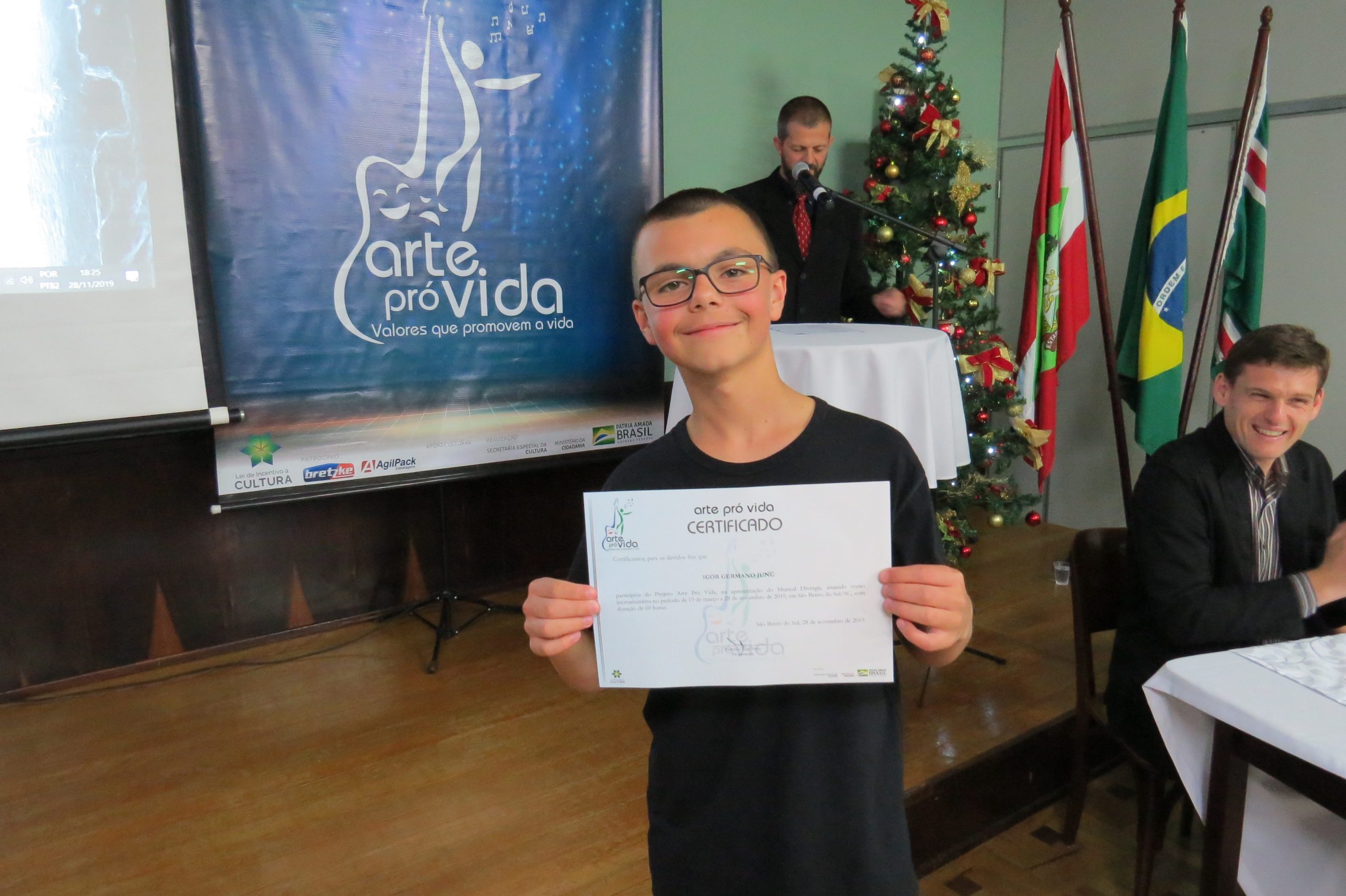 A formação artística em música (instrumental, canto coral, formação de banda), teatro e dança, além de formação na área técnica (sonorização e iluminação de eventos, montagem de palco) é parte integrante e essencial de cada edição do Projeto Cultural ARTE PARA A VIDA. O currículo oferecido encontra-se no submenu “Formação e Treinamento” [link?]. Junto com a formação, vem o treinamento regular para as apresentações dos eventos que fazem parte da agenda cultural do projeto, como os musicais ou os teatros musicais. Apresentamos aqui informações e galerias de fotos e imagens das cerimônias de formatura do projeto dos últimos anos: