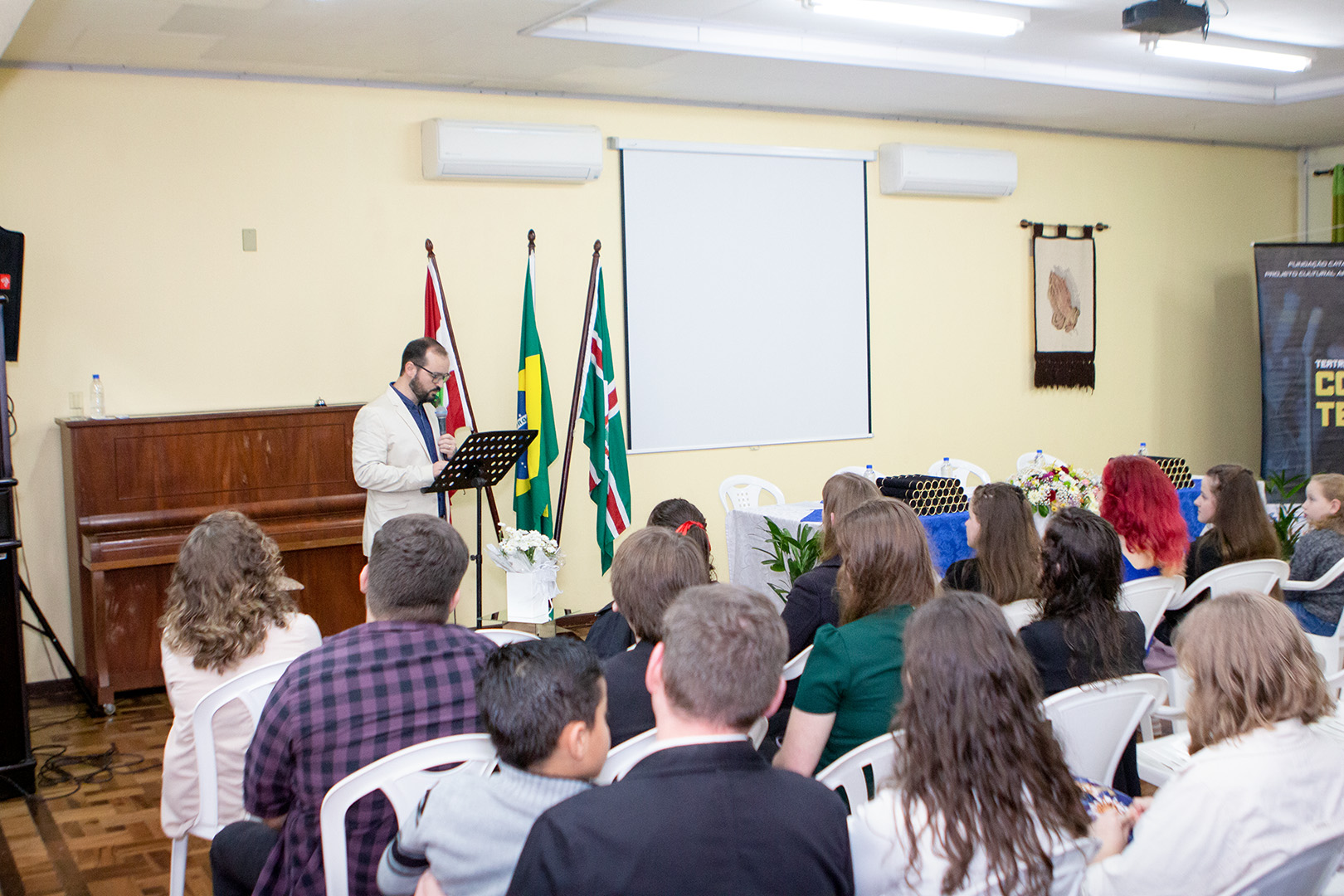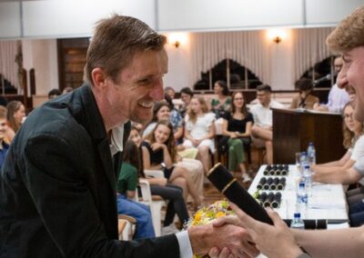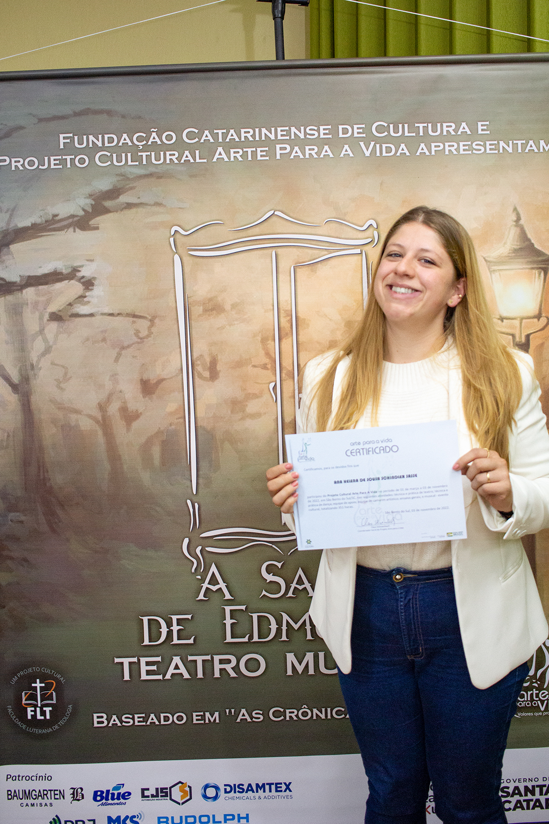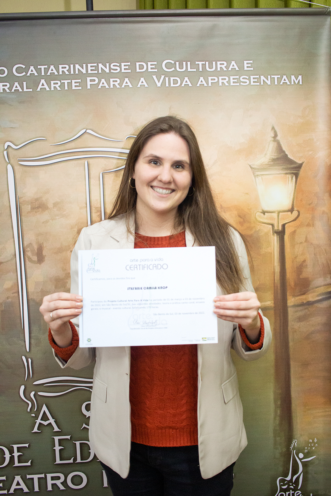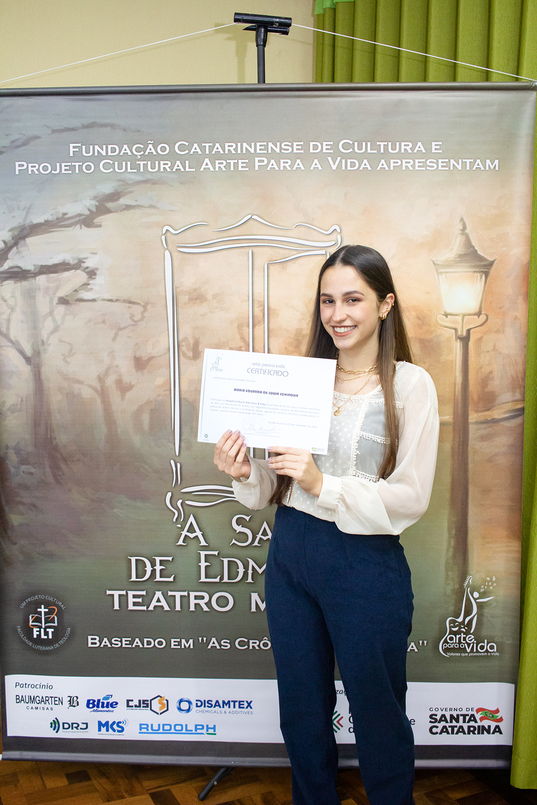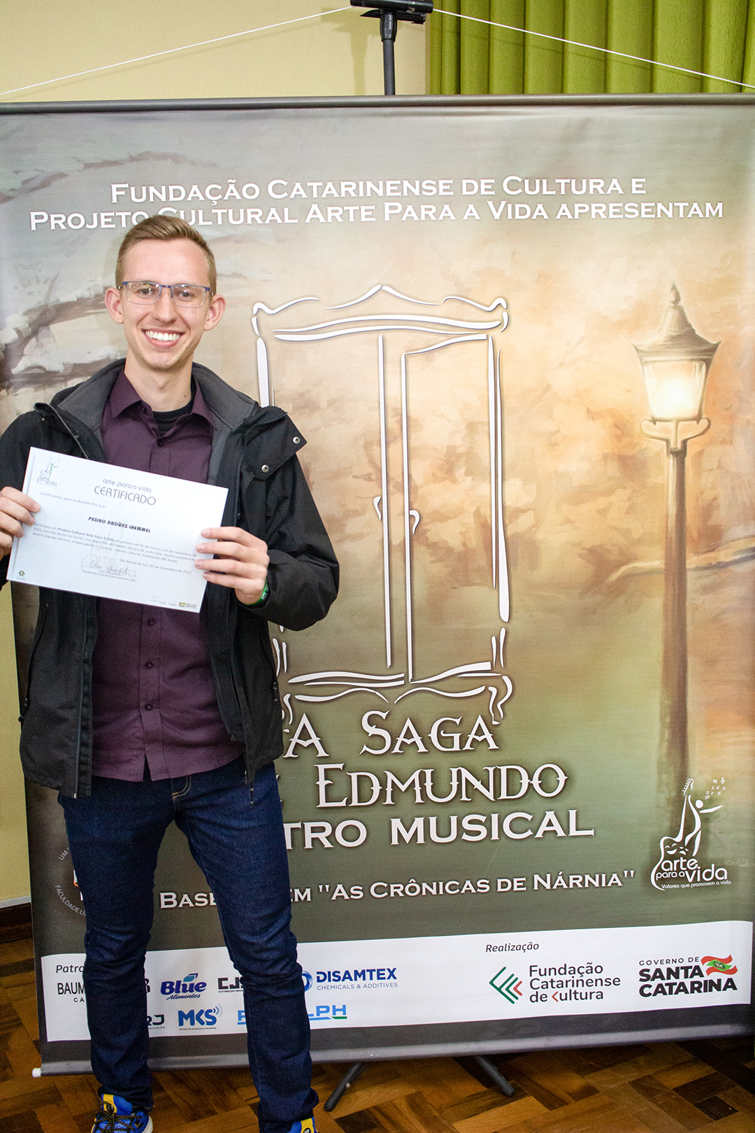 A formação artística em música (instrumental, canto coral, formação de banda), teatro e dança, além de formação na área técnica (sonorização e iluminação de eventos, montagem de palco) é parte integrante e essencial de cada edição do Projeto Cultural ARTE PARA A VIDA. O currículo oferecido encontra-se no submenu “Formação e Treinamento” [link?]. Junto com a formação, vem o treinamento regular para as apresentações dos eventos que fazem parte da agenda cultural do projeto, como os musicais ou os teatros musicais. Apresentamos aqui informações e galerias de fotos e imagens das cerimônias de formatura do projeto dos últimos anos:
